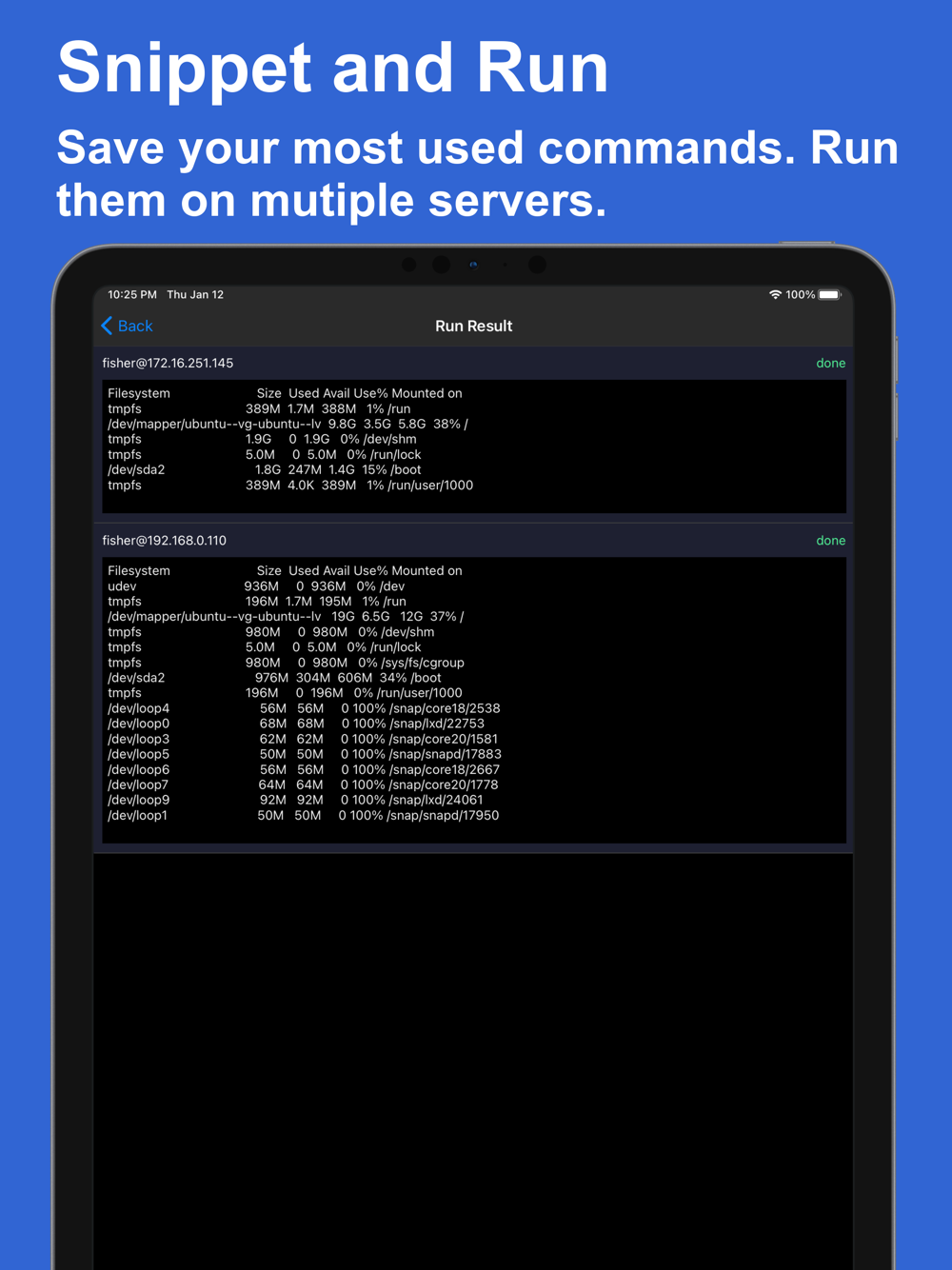 * Snippets. Add snippet shortcuts and reuse. Run snippets on multiple servers.