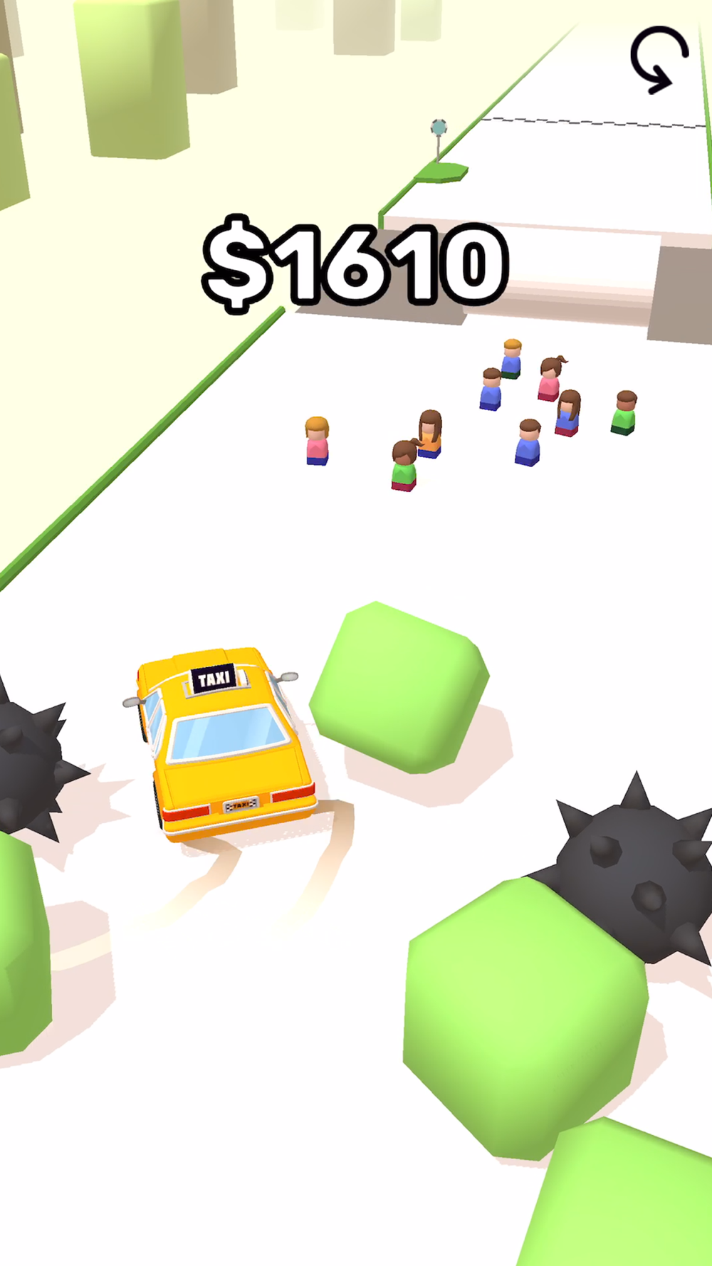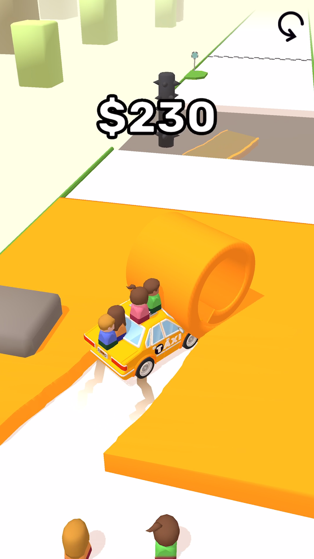 Take a taxi and earn coins. Shave the orange blocks to make a way.