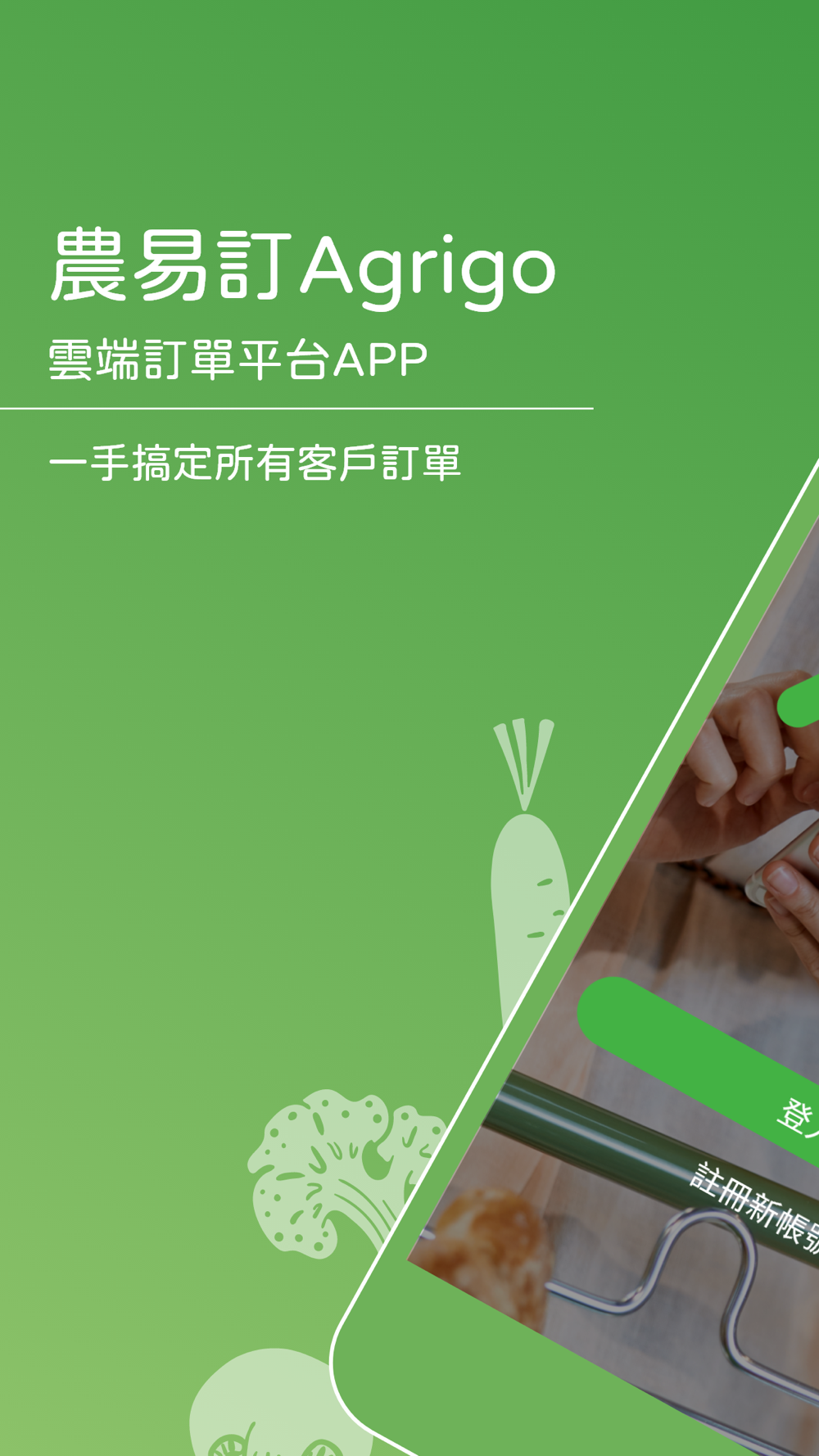 農易訂Agrigo APP 是專為農漁畜量身打造的雲端訂單平台,集合了許多農漁畜之食材供應商,只要您手上有任何行動裝置,不論何時何地,就可以享受輕鬆採購,加速採溝流程,提升您的工作效率及品質。