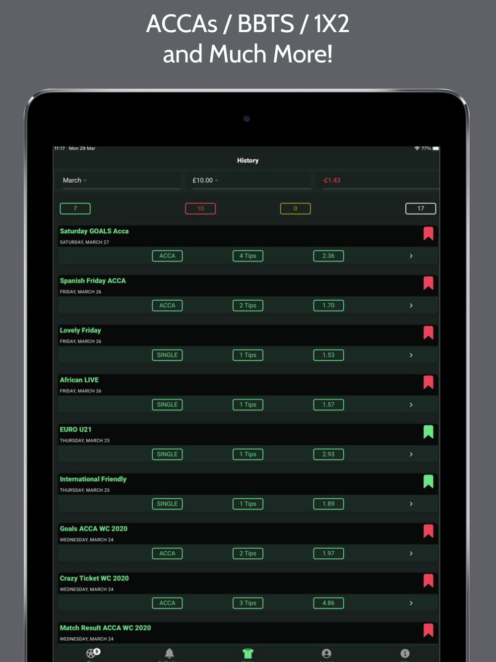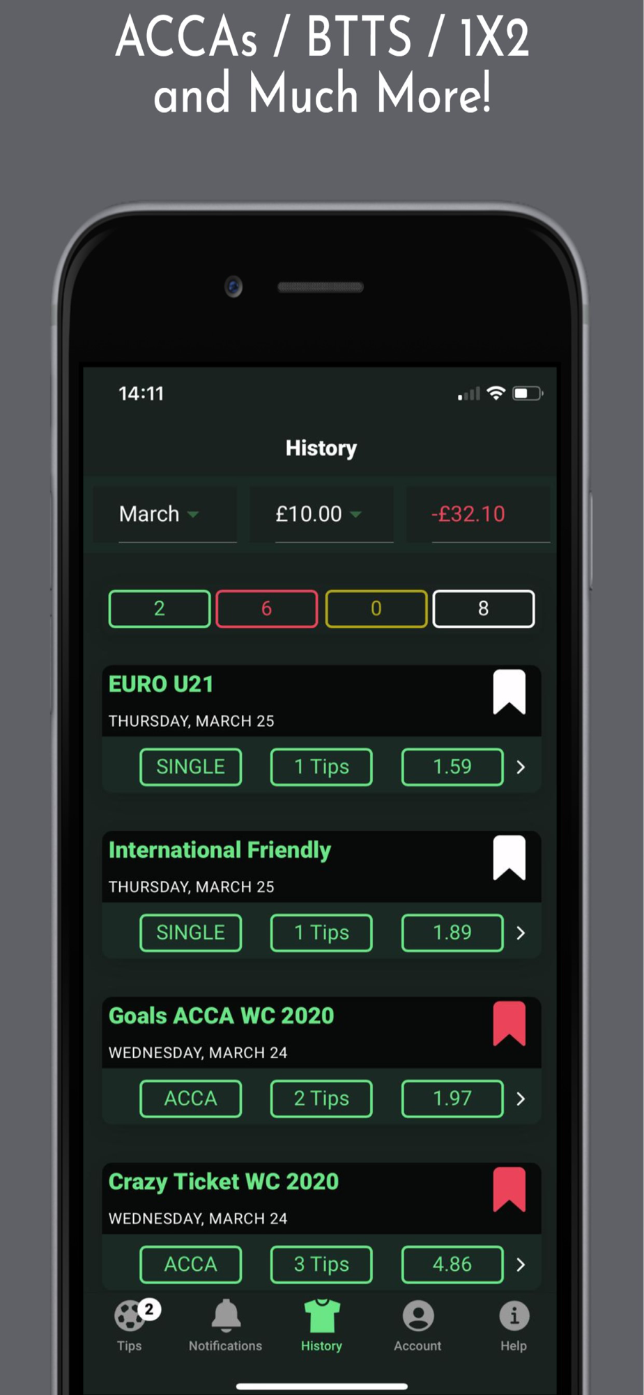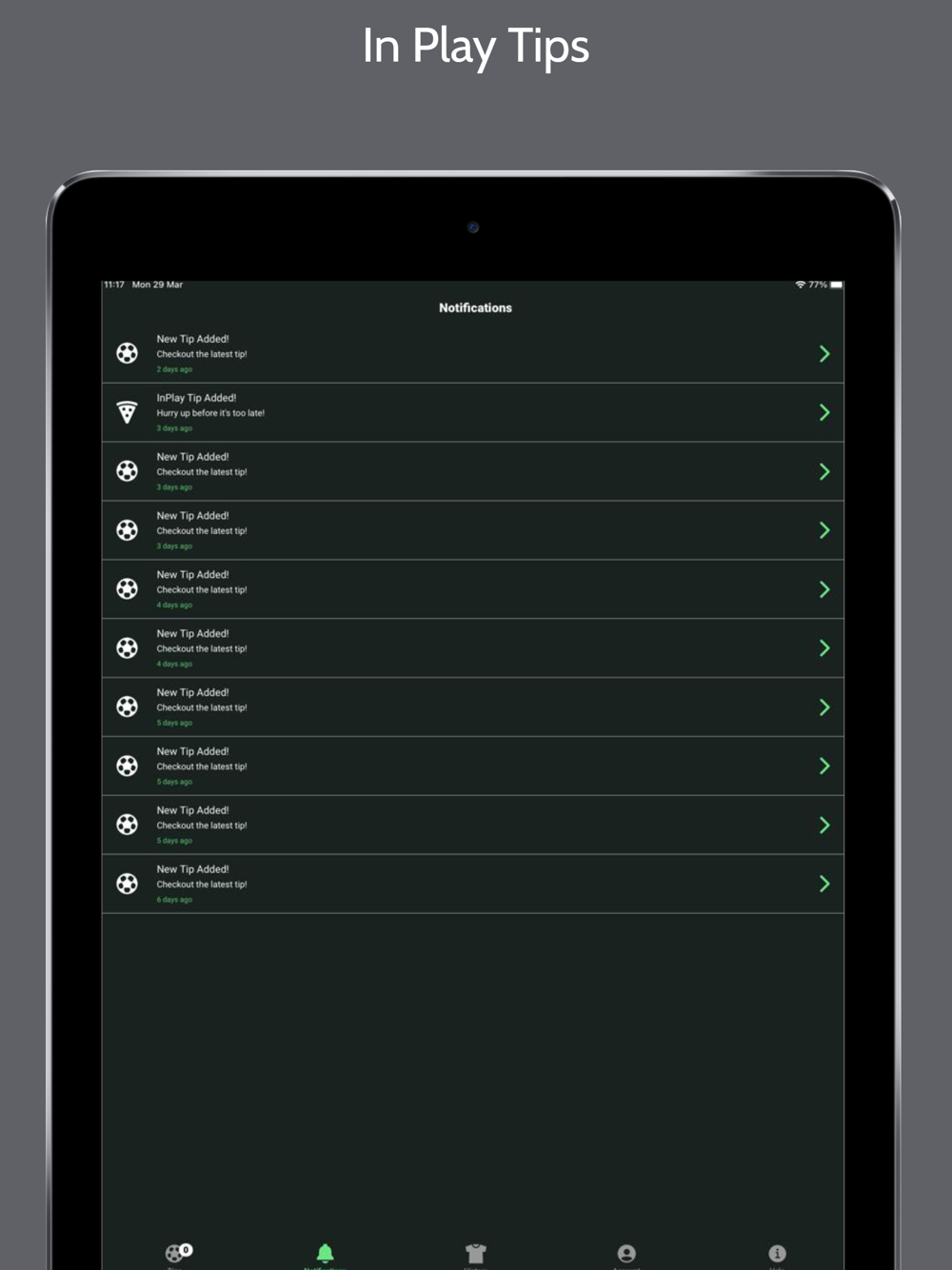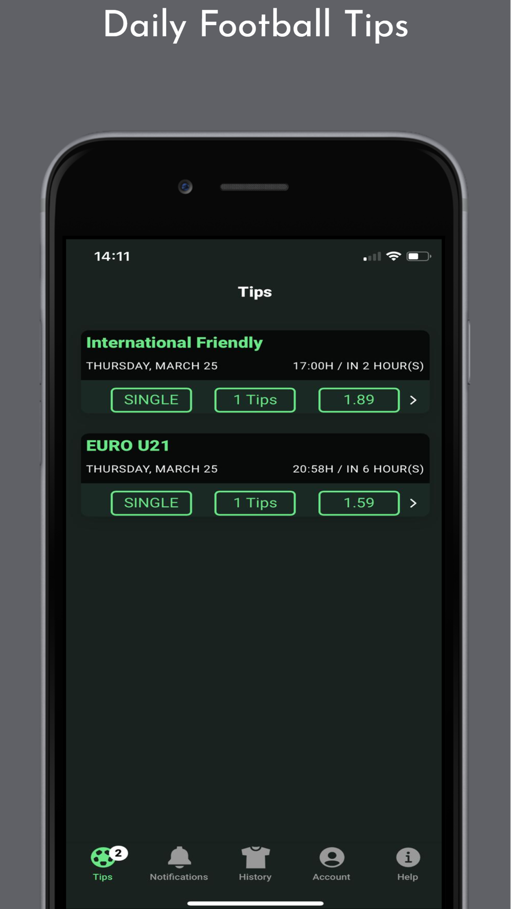 Every day we analyze football matches and select the best betting tips for you, receive Notifications when the football tips are available on the app!