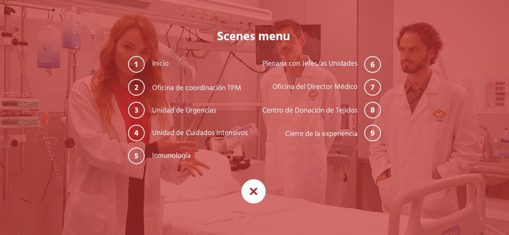 The Transplant Procurement Management (TPM) Journey app is an Interactive and Immersive 360 Video Learning Experience developed for the DTI Foundation (in English, Spanish and Chinese) which aims to provide the user with: