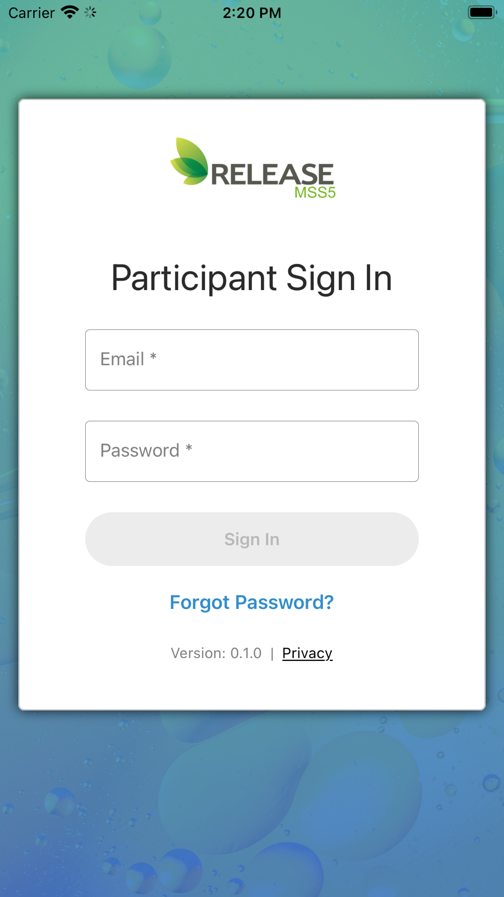 GWSP20105 – Study Participant App. The App does not provide medical advice. Please consult with your study doctor with any questions or concerns you may have regarding your individual needs or medical conditions or any related questions about your involvement in the study.