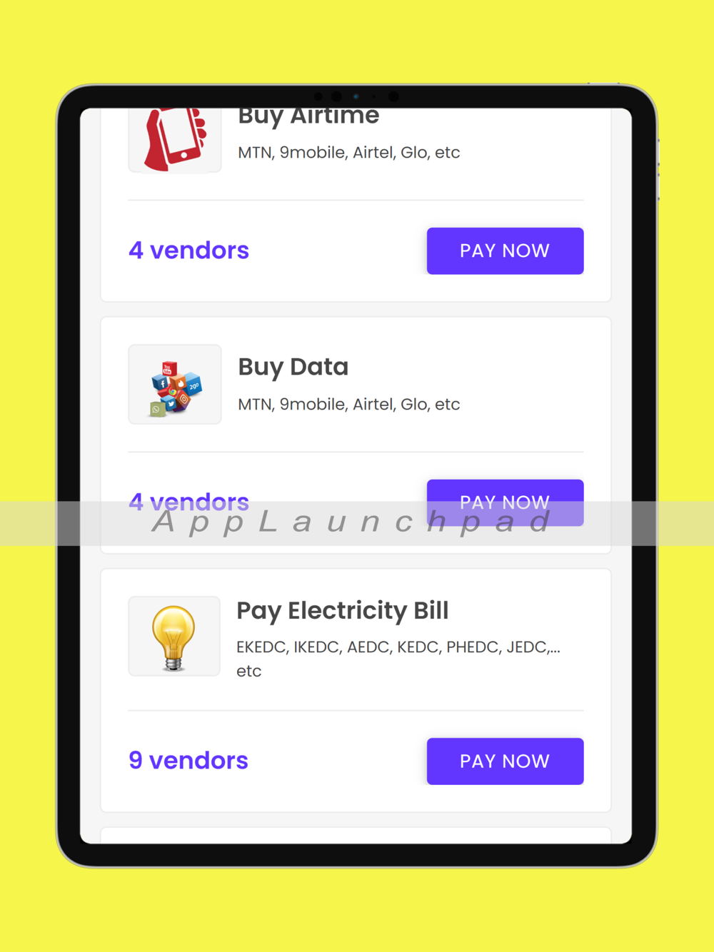 UfitPay also offer partnership opportunities for Agents, Retailers and Vendors who wish to have their services listed on the platform.
