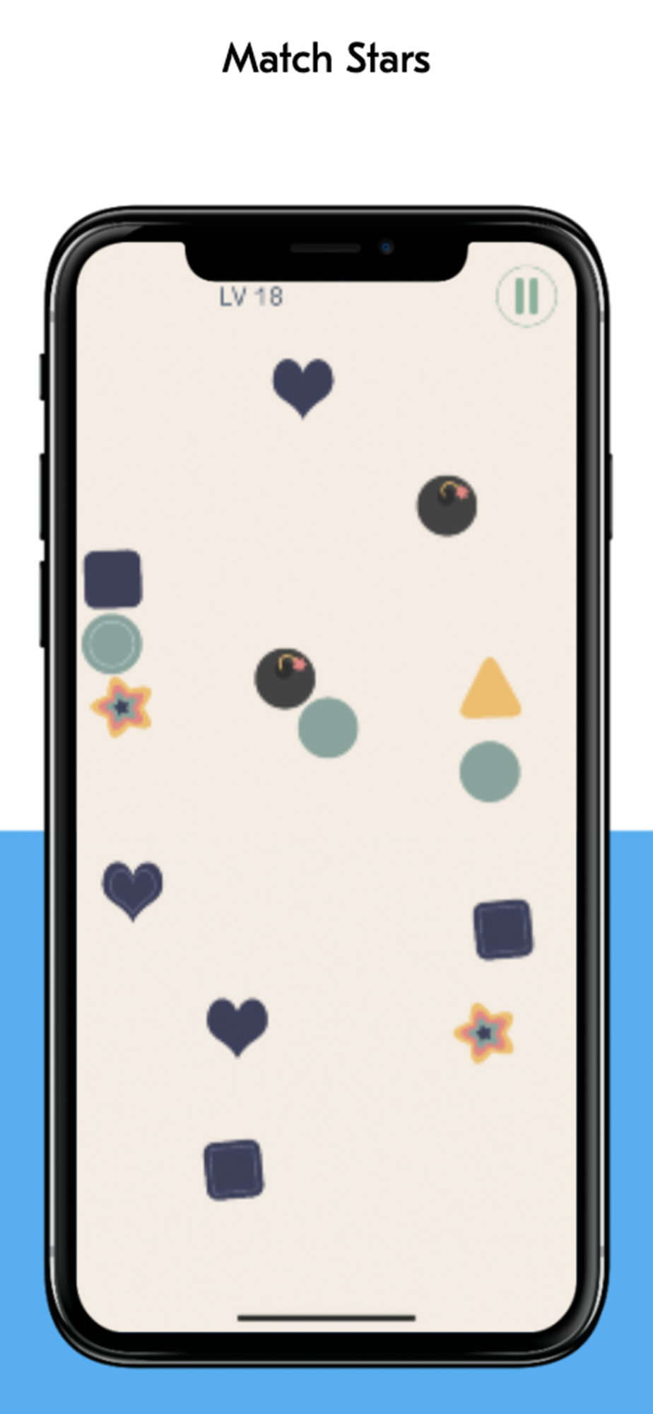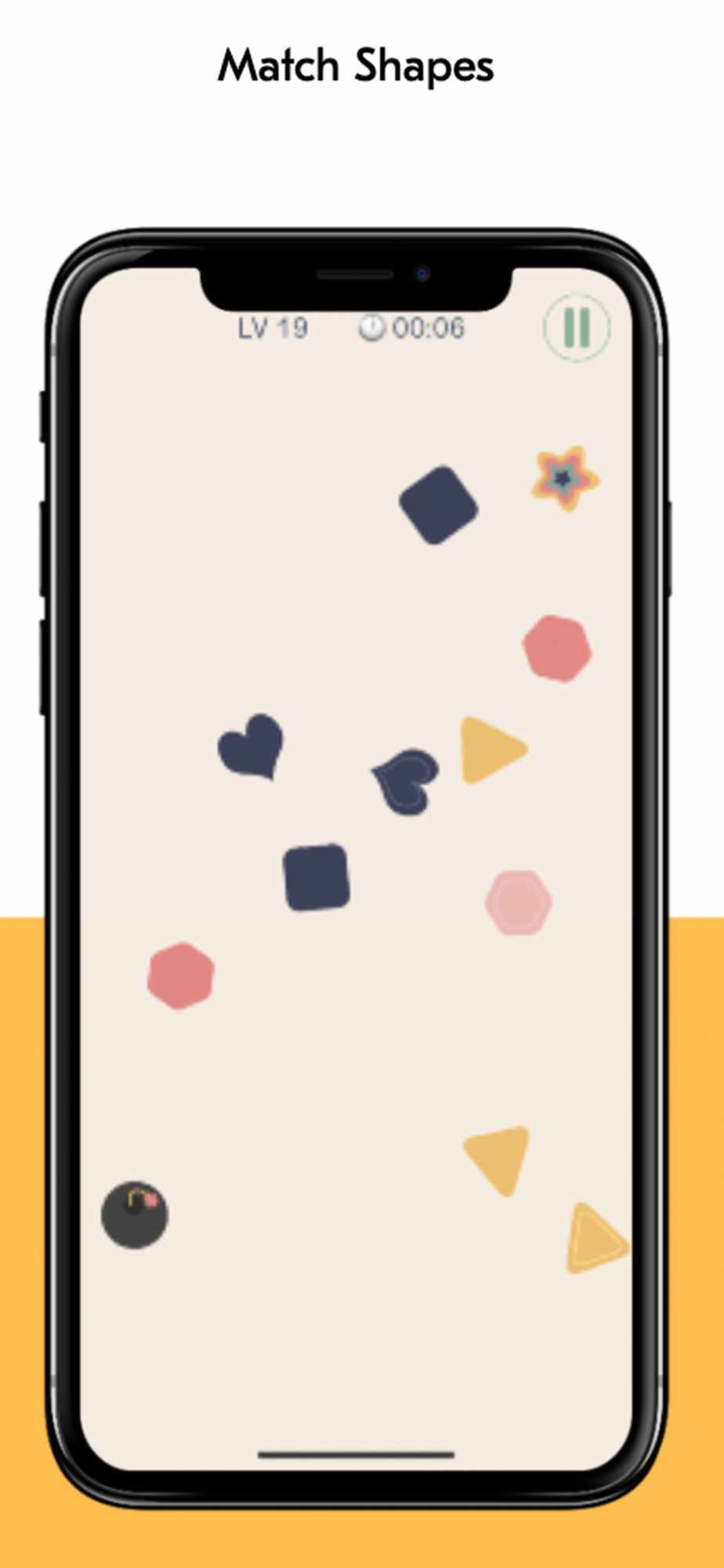 Spot the same shapes and swipe them. Whoops, they are moving fast!