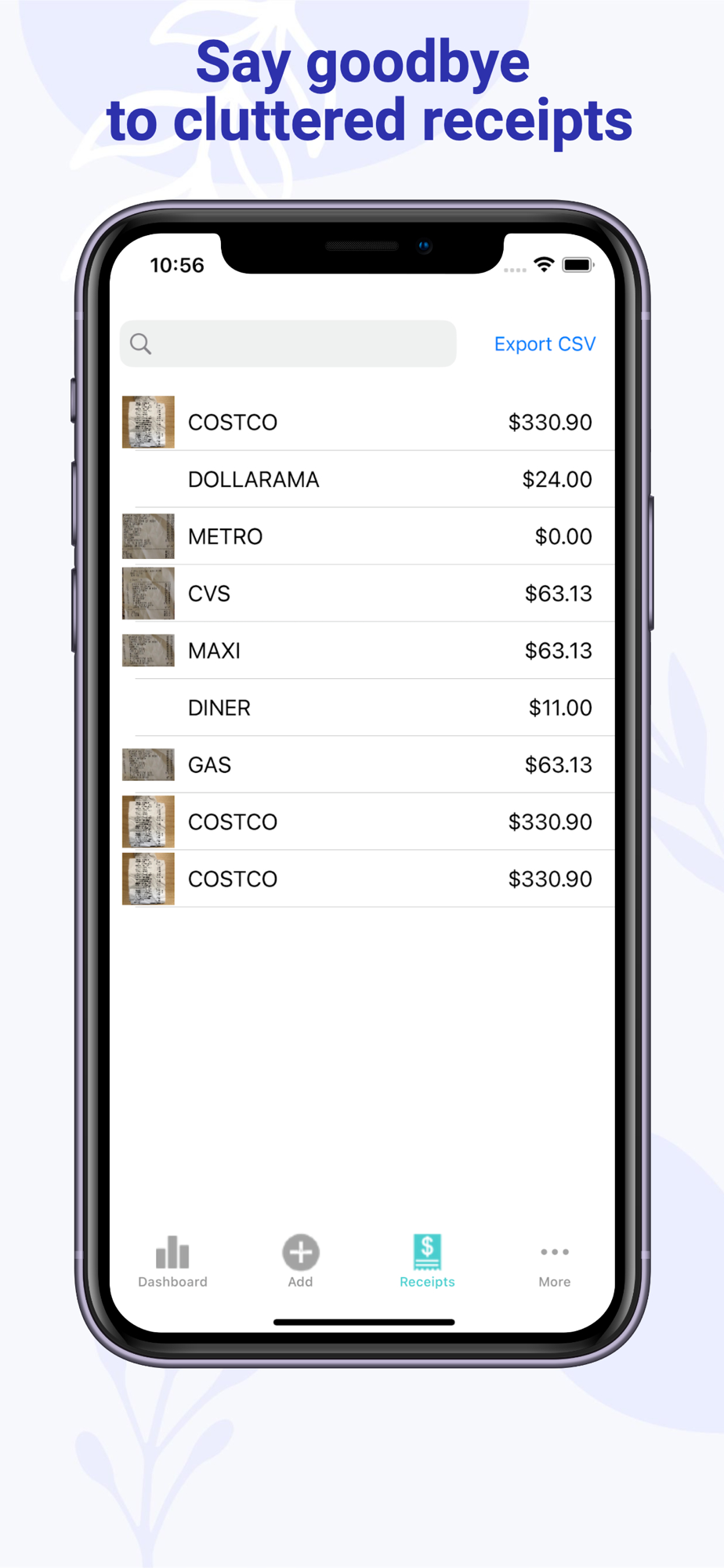 Easily export your receipt data to CSV for further analysis and budget planning.
