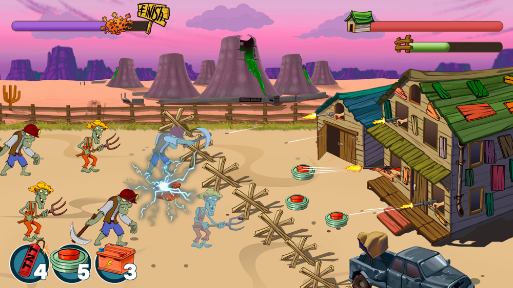 Old farm against zombie attack! Upgrade and upgrade your arsenal! Upgrade your building defense! Build a fence! Take resources from the factory!