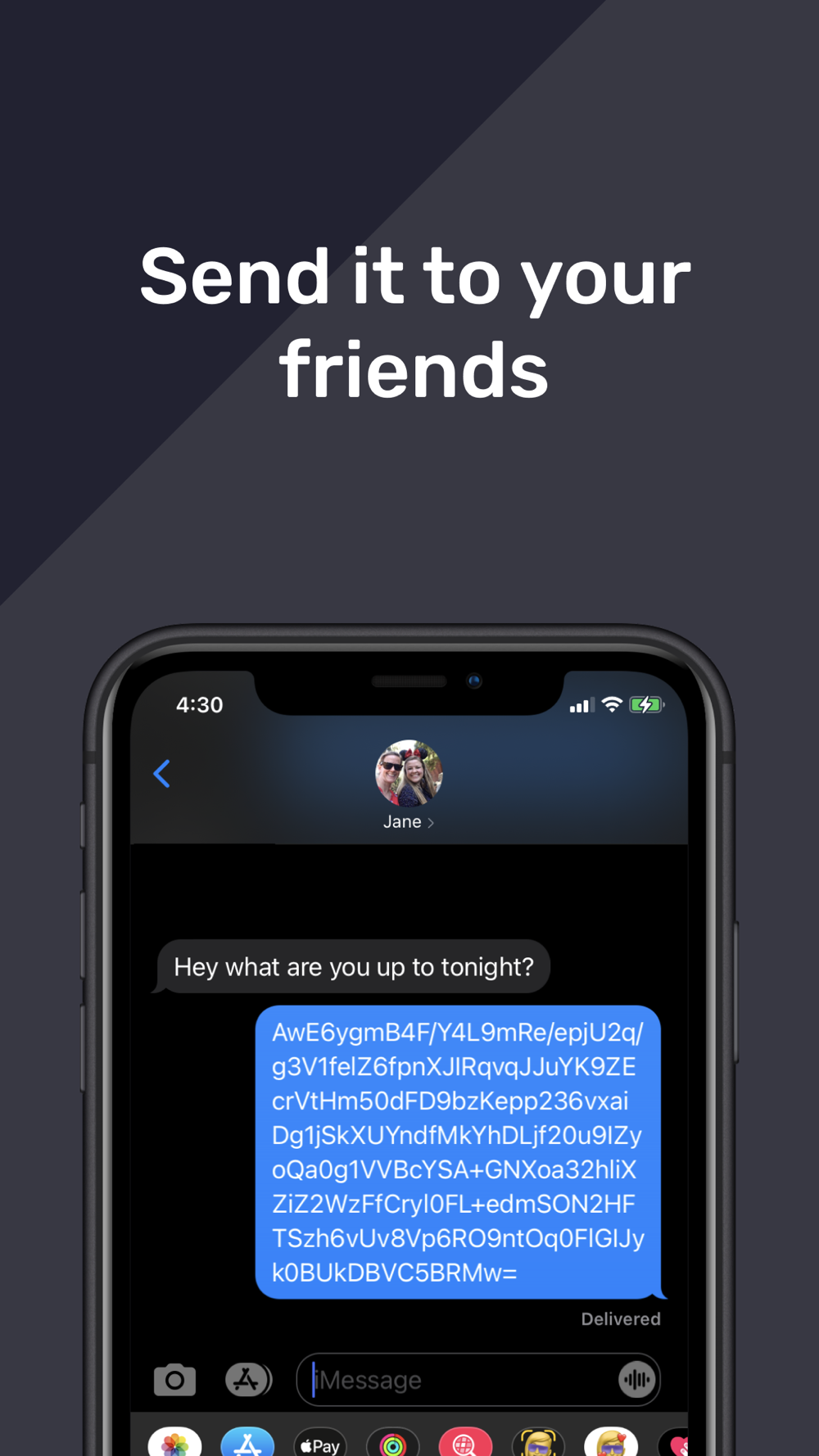 You send a secret message. Only your friend can decode it, with the right password you set and their DecoderPro app!