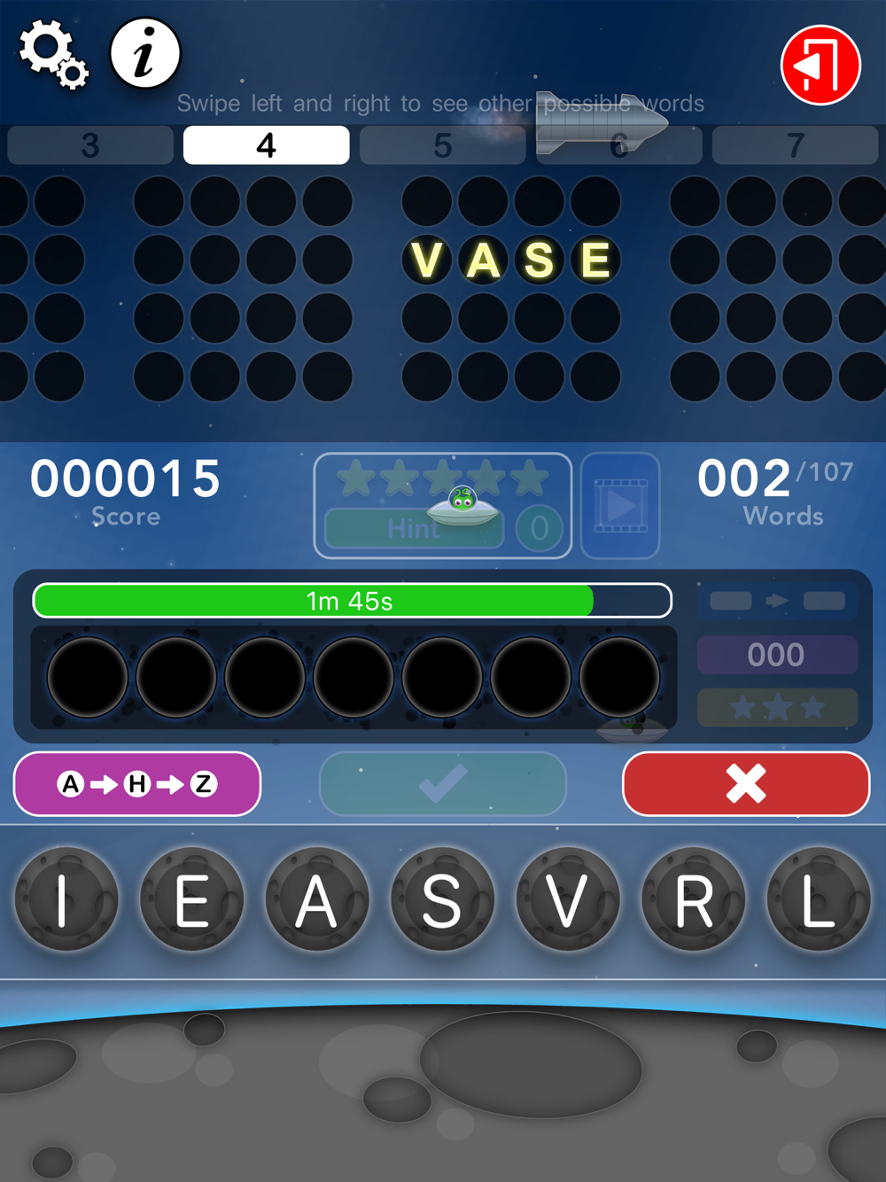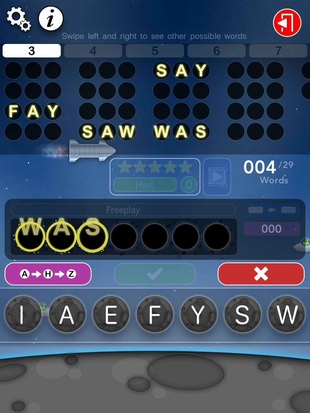 Alienary is a word puzzle game, you are given a set of jumbled letters and you have to find all the words you can.