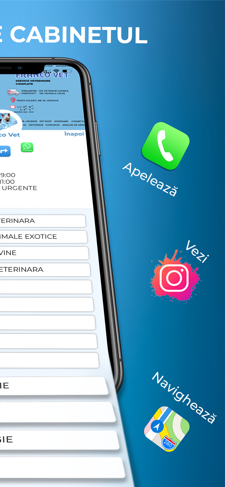 o Apeleaza Ambulanta Veterinara din zona ta, cu un singur tap (click)