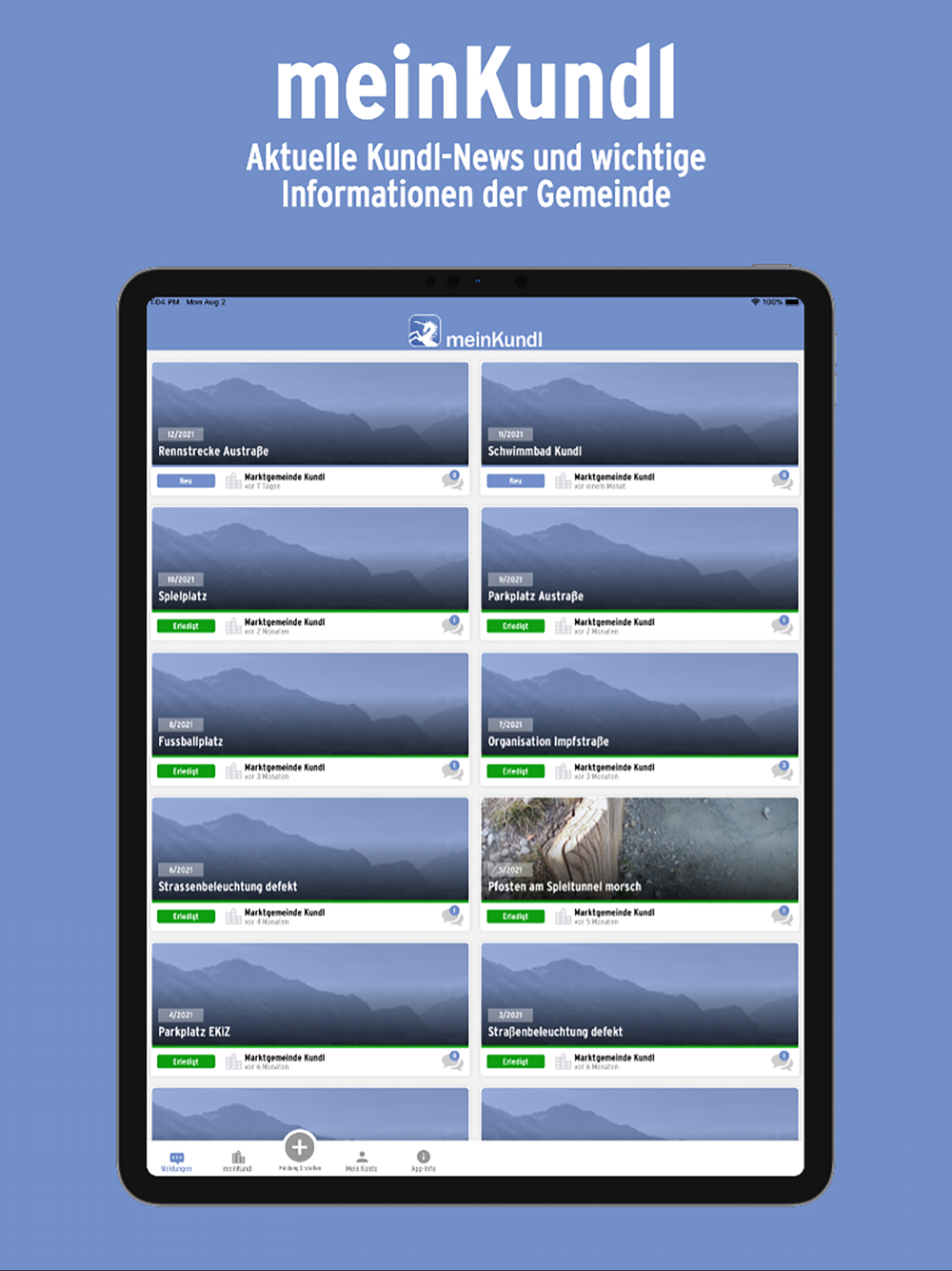 Sie möchten keine wichtigen Neuigkeiten der Gemeinde Kundl verpassen, haben aber zu wenig Zeit, sich täglich auf der Gemeindehomepage oder auf Facebook zu informieren? Dann ist die meinKundl-APP genau das Richtige!