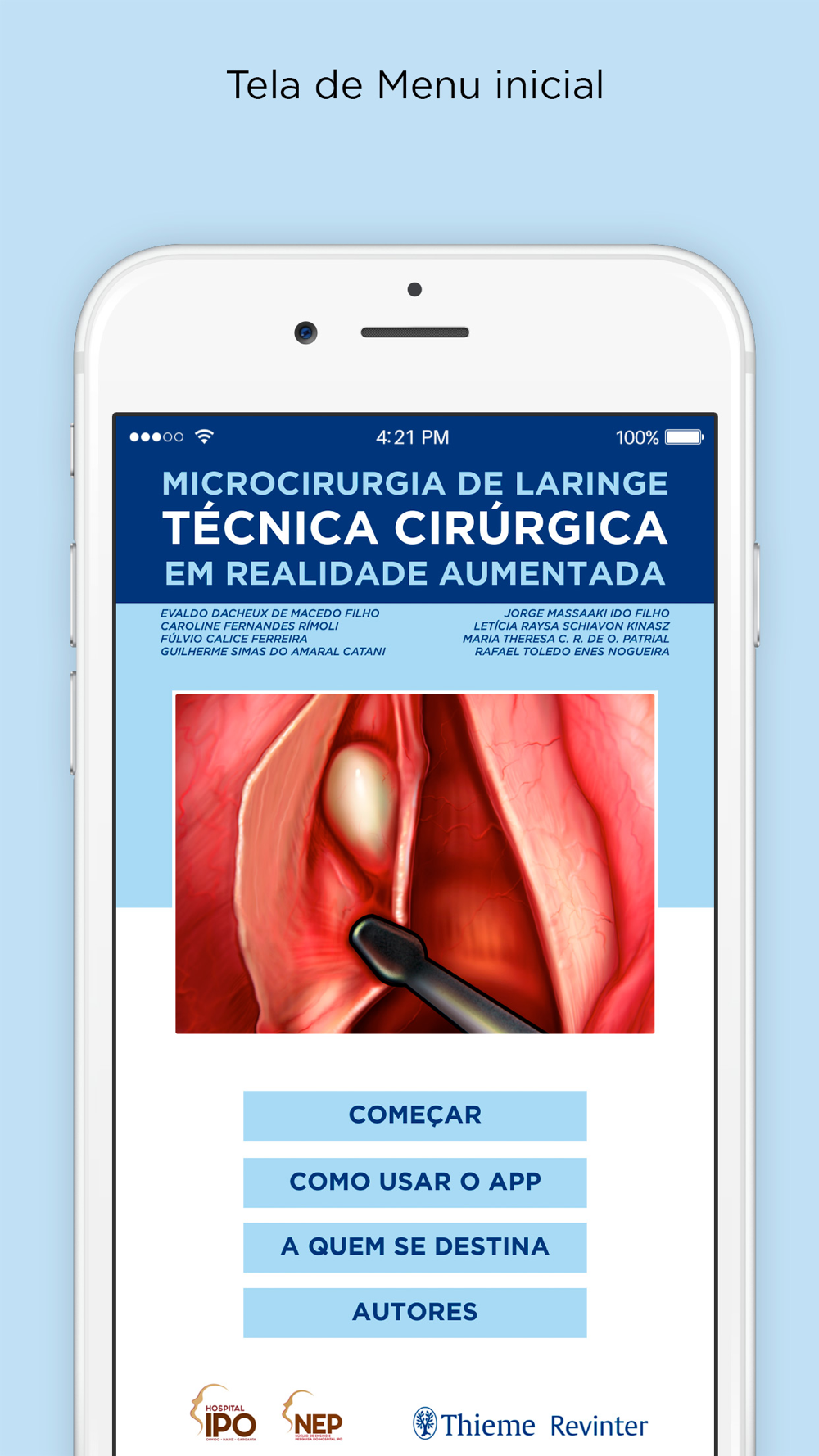 Versão de lançamento para o App presente no livro IPO Microcirurgia de Laringe em Realidade Aumentada, escrito pelo Drs. e Dras. orge Massaaki Ido Filho, Letícia Raysa Schiavon Kinasz, Maria Theresa C. R. de O. Patrial, Rafael Toledo Enes Nogueira, Evaldo Dacheux de Macedo Filho, Caroline Fernandes Rímoli, Fúlvio Calice Ferreira e Guilherme Simas do Amaral Catani e publicado pelo IPO-Instituto Paranaense de Otorrinolaringologia