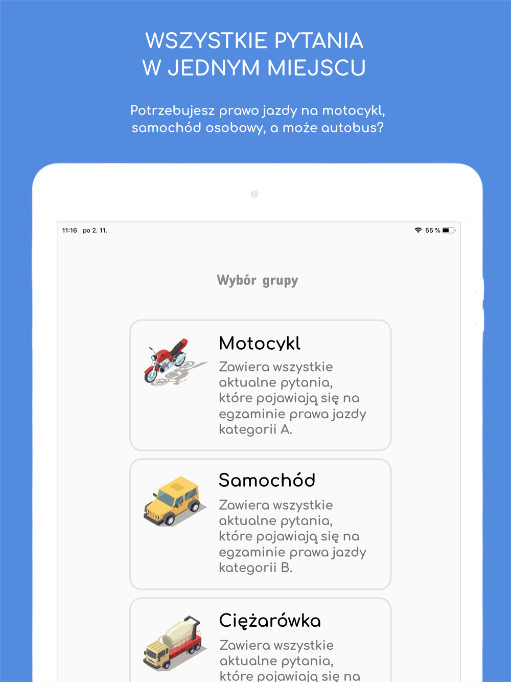Prawo Jazdy Plus dla osób ubiegających się o prawo jazdy ułatwia przygotowanie się do egzaminu końcowego. Aplikacja oferuje oficjalny zestaw pytań Ministerstwa Infrastruktury (najnowszą wersję), oferuje nowoczesny dostęp do nauki oraz w łatwej i zabawnej formie pomaga użytkownikowi przyswoić dużą liczbę pytań.