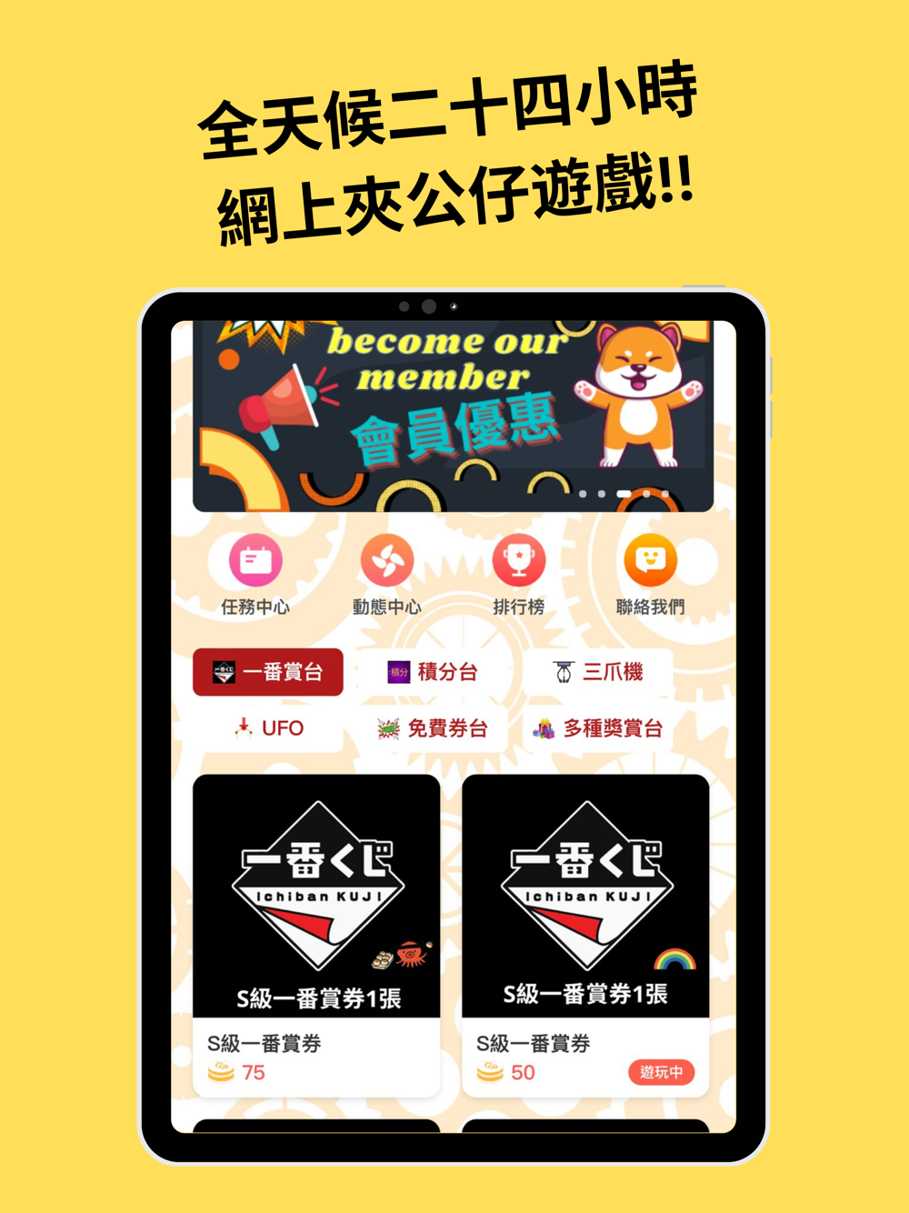 由日本引入最新的線上夾公仔遊戲,可以在任何時候任何地方玩,有傳統的三爪和日本UFO機選擇,每天做任務可以免費玩和免費送貨。