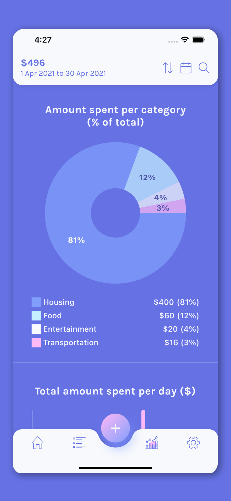 SpentAll is a simple-to-use spending tracker. Log your expenditures, categorize them, and track your spending habits. Customize your account by selecting your local currency, setting spending limits, and personalizing spending categories. Keep an eye on the spending guage on the home dashboard to help you stay conscious of your spending! Make use of the analytics page to see more detailed metrics into where your money goes, and when. This app is perfect for those simply looking to keep an eye on their expenditures.
