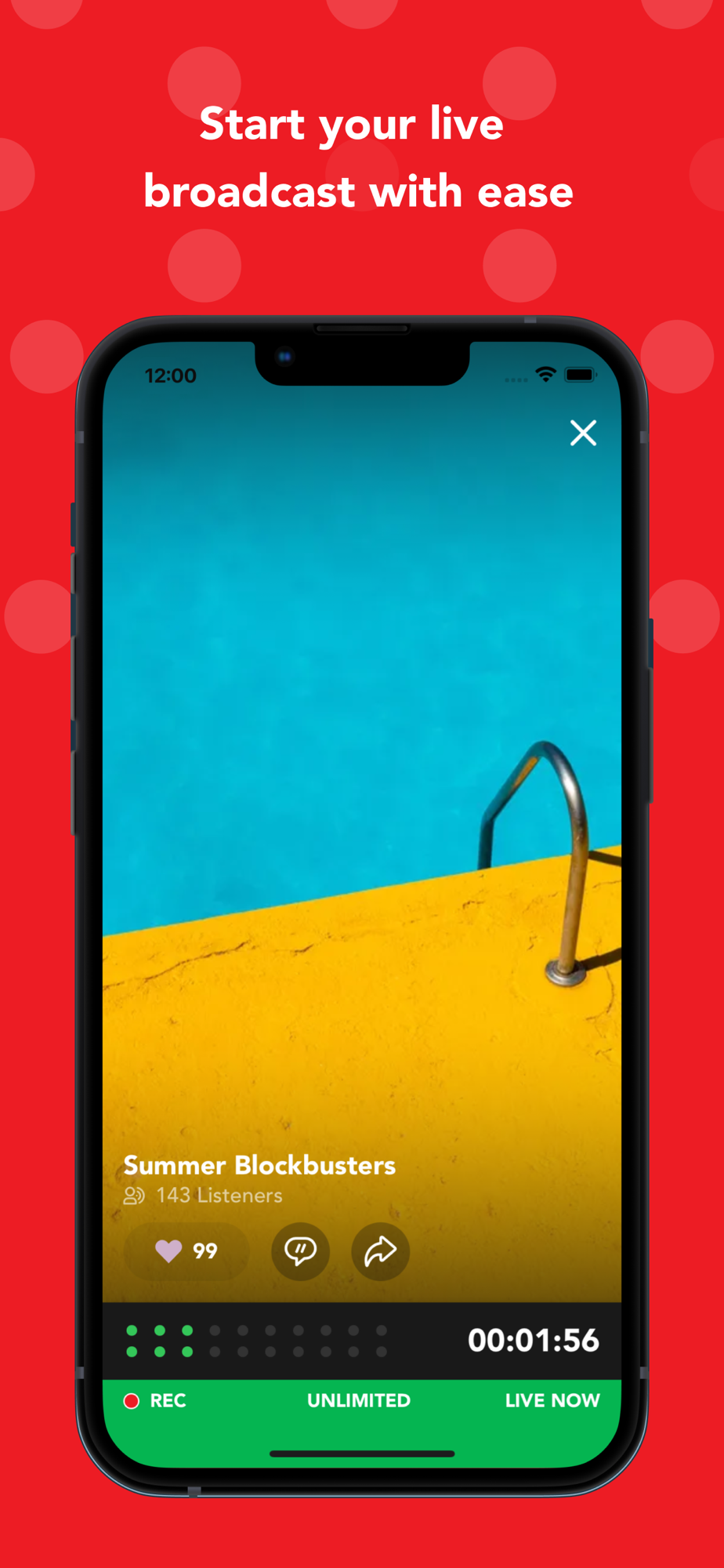Share links to your channel’s live event page and chat with people already tuned in. Save recordings of your event and publish them to your channel so more people can listen on repeat. Your listeners will love the easy access to your audio.