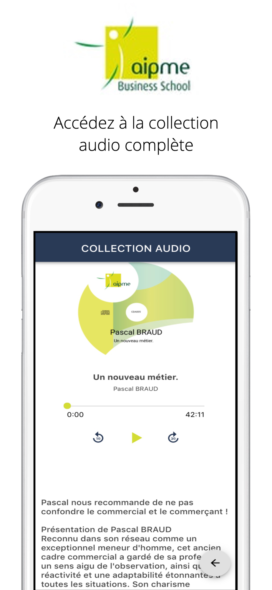 Découvrez l'application AIPME Business School. Vous y trouverez nos actualités, la collection audio complète pour vous former ainsi que de nombreuses exclusivités
