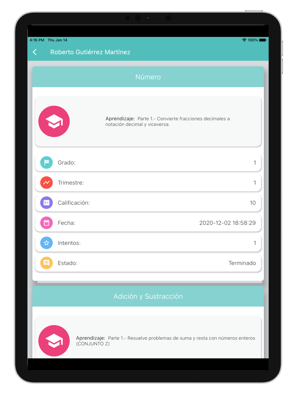 Descripción: La app AAE, “Avance del Aprovechamiento Escolar”, le permite al tutor o padre de familia consultar en cualquier momento el avance en el logro del aprovechamiento escolar obtenido mediante el instrumento pedagógico: "Pon a prueba tus conocimientos" de cada uno sus hijos(as) en Mate365: "CURSO COMPLETO DE MATEMÁTICAS", en el grado académico correspondiente y de su interés; primero, segundo o tercero de secundaria y que fue establecido en el contrato por los interesados.