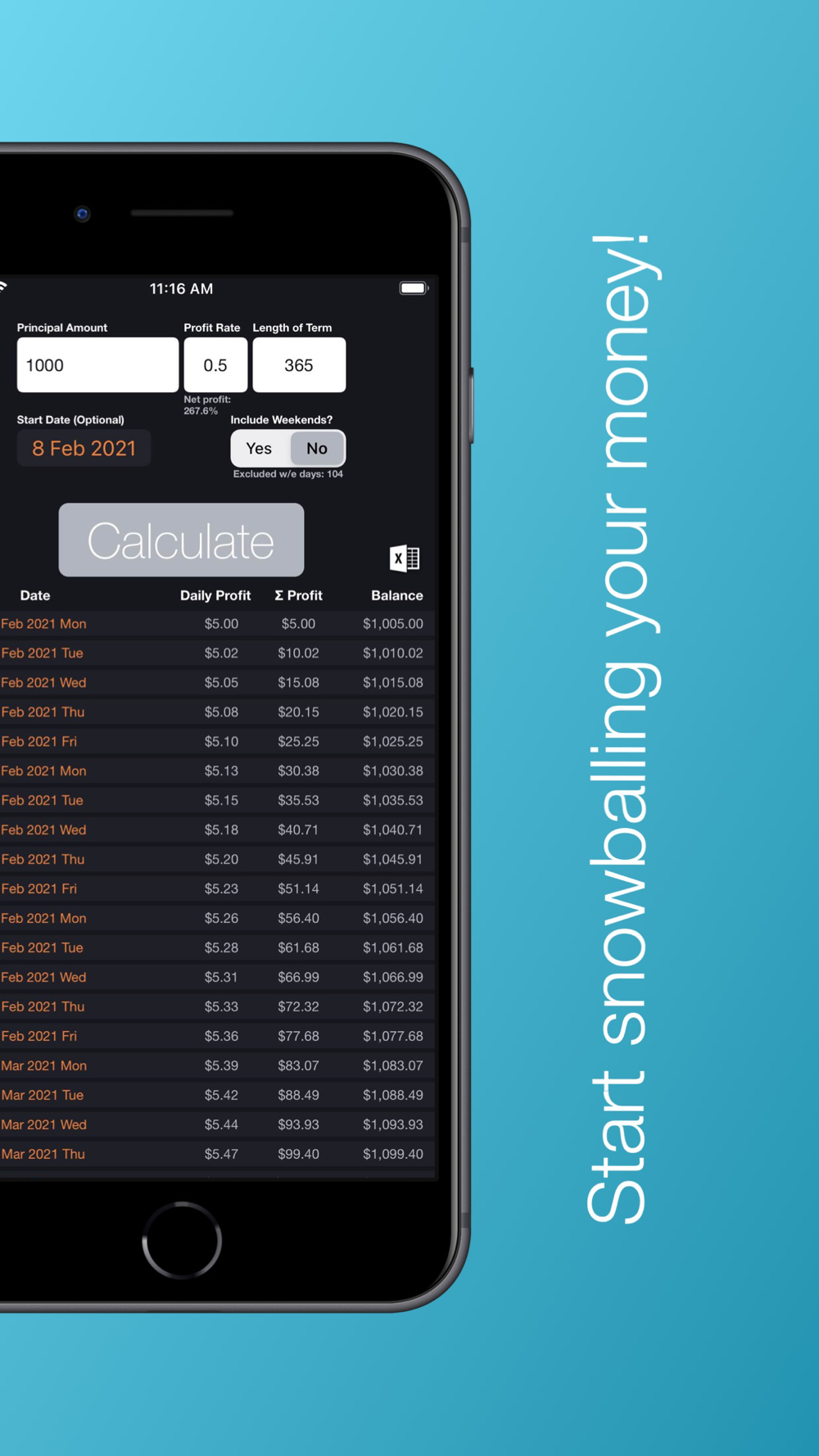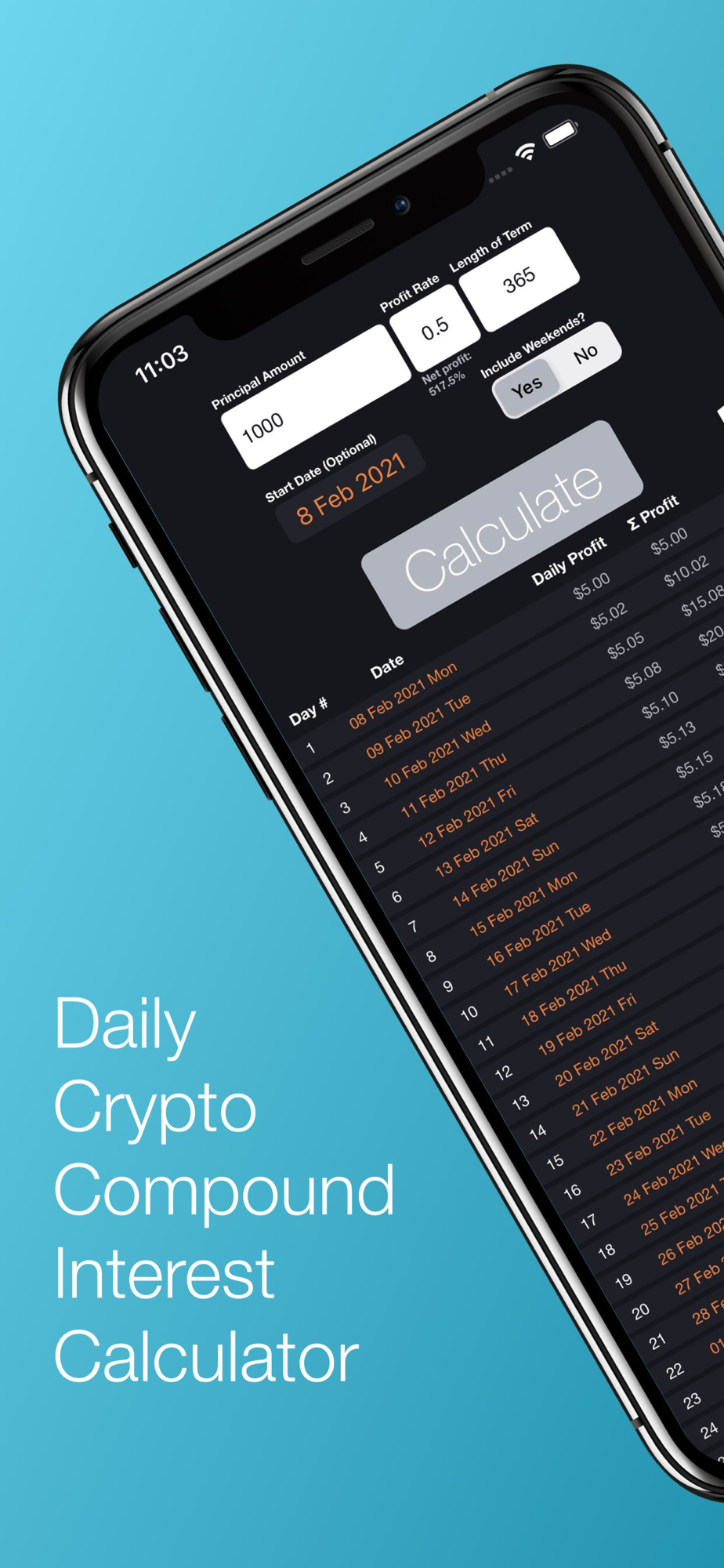 With some types of investments you might find that your interest is compounded daily, meaning that you are earning interest on both the principal amount and previously accrued interest on a daily basis. This is often the case with some bitcoin and crypto currency trading platforms. When interest is compounded so frequently on a fixed basis, it can mean that the interest accrued increases quickly, as every day's interest figure is bigger than the previous day.