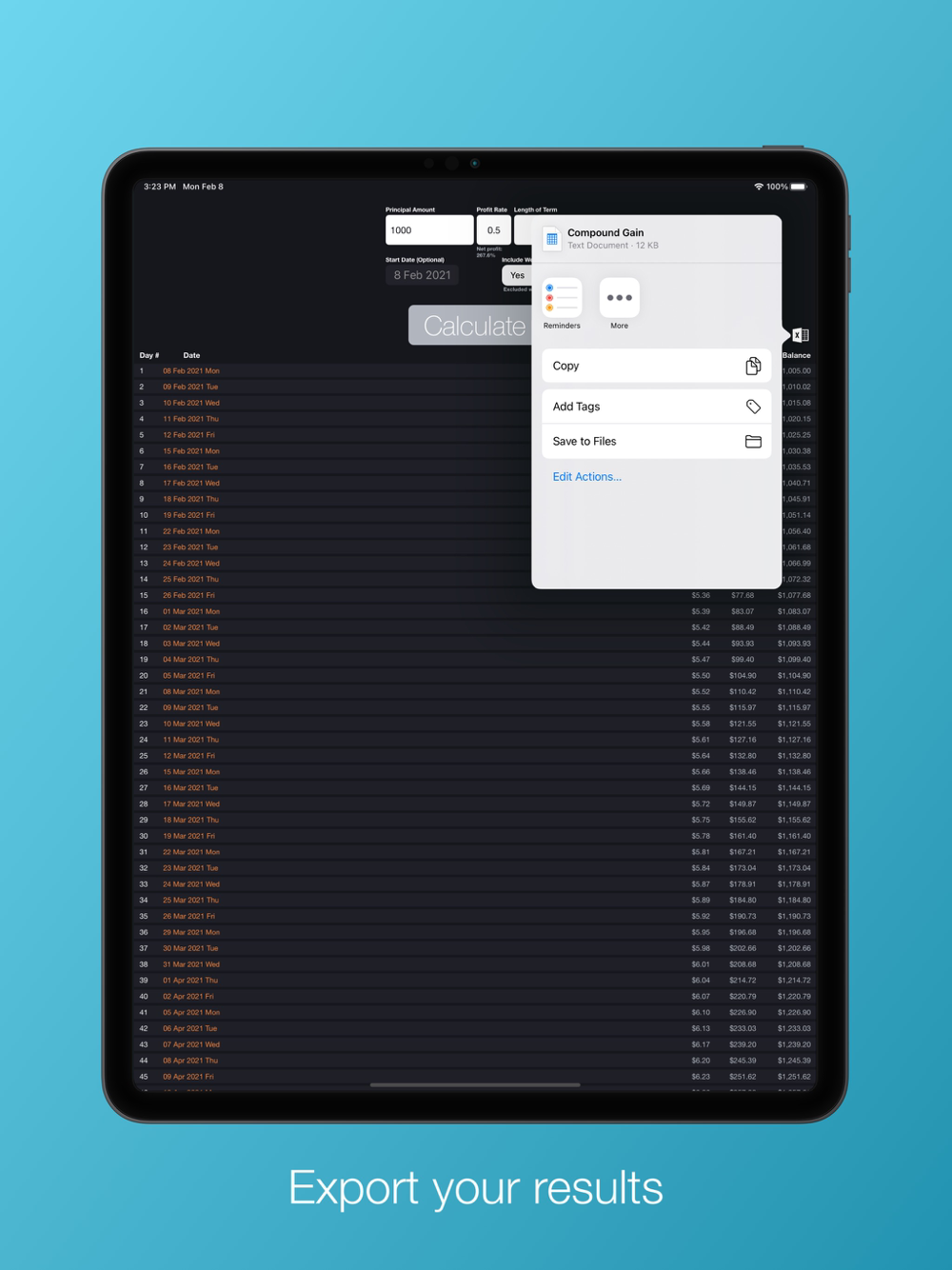 Use this daily compound interest calculator to get an estimate of the daily interest you might earn on your investment over a fixed number of days.