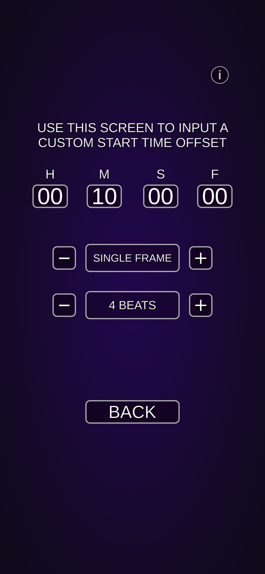 The timecode mode allows the input of a specific offset point for a song and allows you to skip ahead in time by bpm measures.