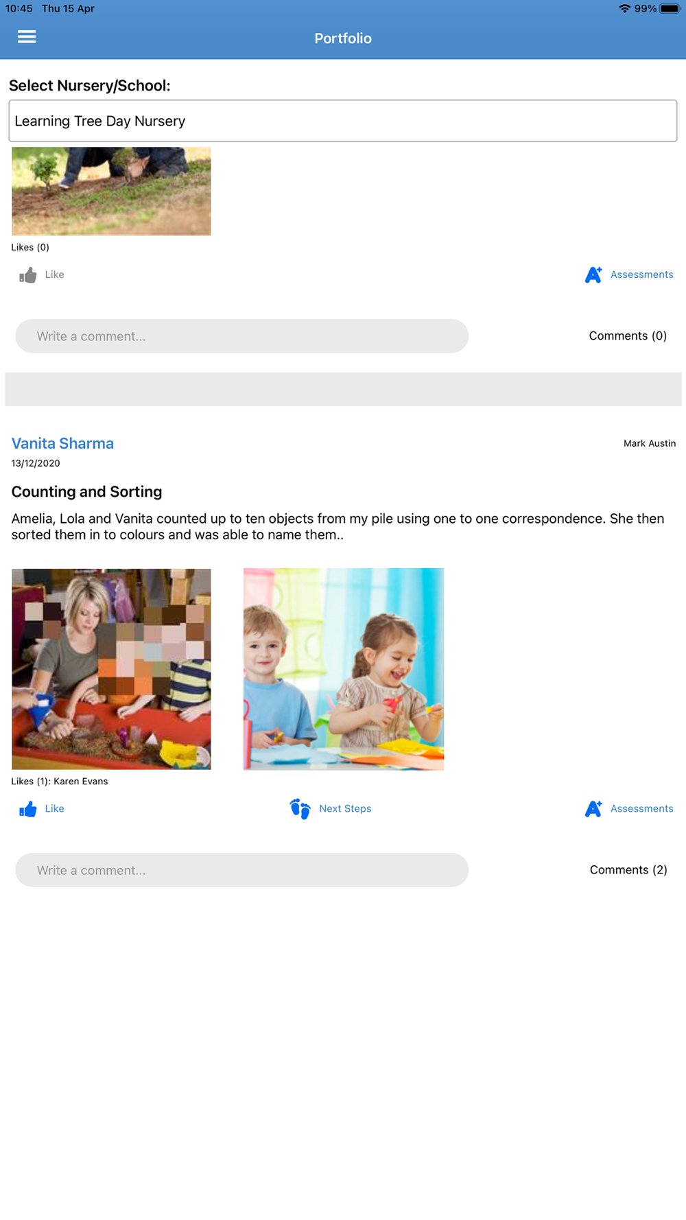 - View live activities in your child’s learning diary, enlarge photos and playback videos/audio clips
