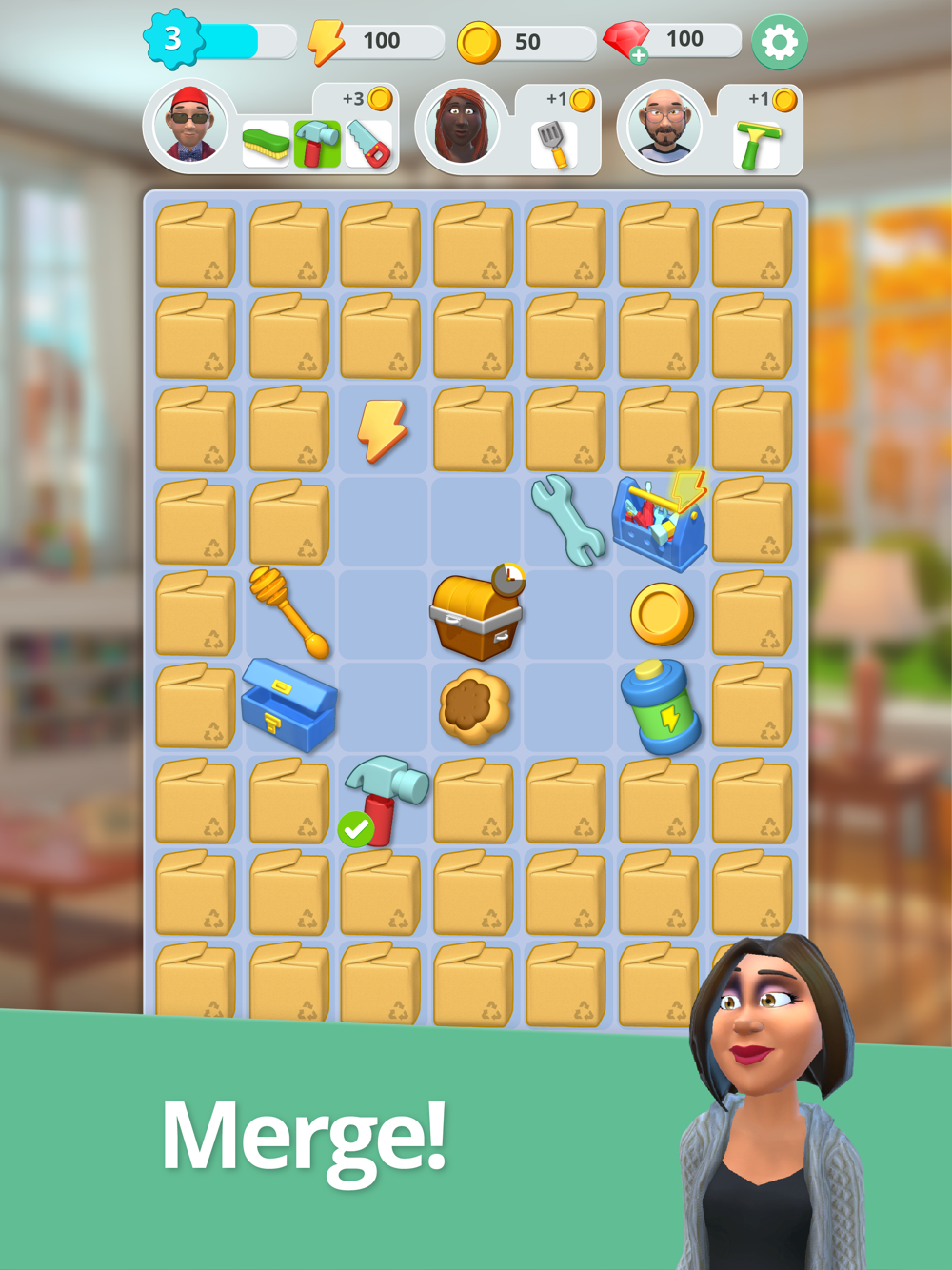 Get ready for a brand new and exciting merge game! Explore Mergedom where you merge countless tools to upgrade them so you can use them to repair, renovate, customize, and design your home.