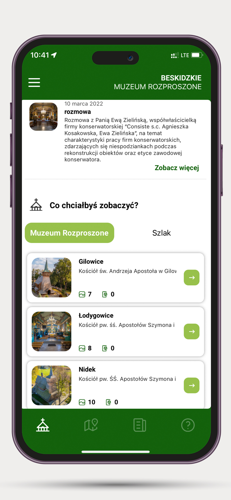 Aplikacja informacyjna na temat Beskidzkiego Muzeum Rozproszonego Diecezji Bielsko-Żywieckiej. Można w niej znaleźć opis projektu, informacje na temat każdej lokalizacji wchodzącej w skład muzeum wraz z nawigacją do niej, a także aktualności z realizacji projektu. Aplikacja stanowi swoisty przewodnik po rozproszonym w terenie muzeum składającym się z wielu obiektów stanowiących przykład architektury drewnianej tamtego regionu.