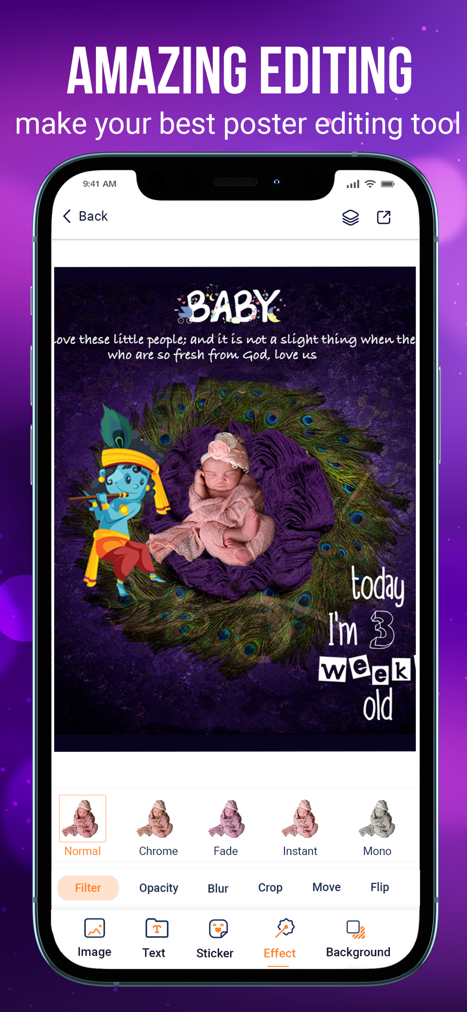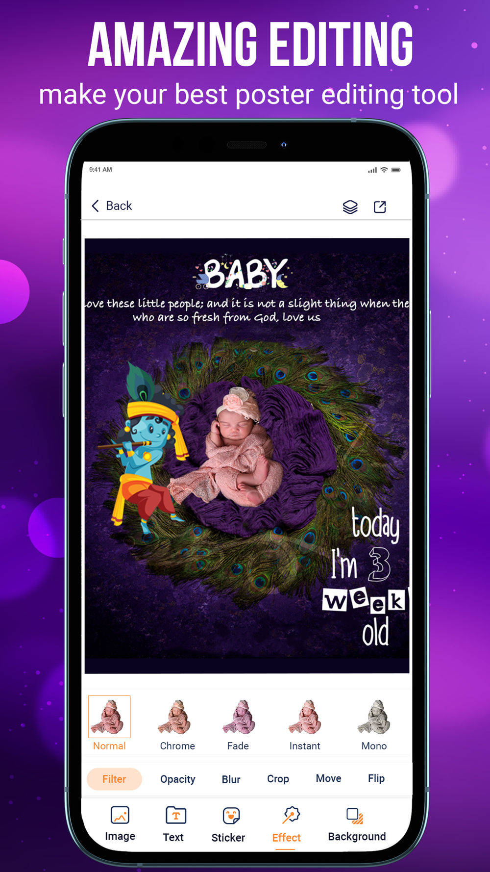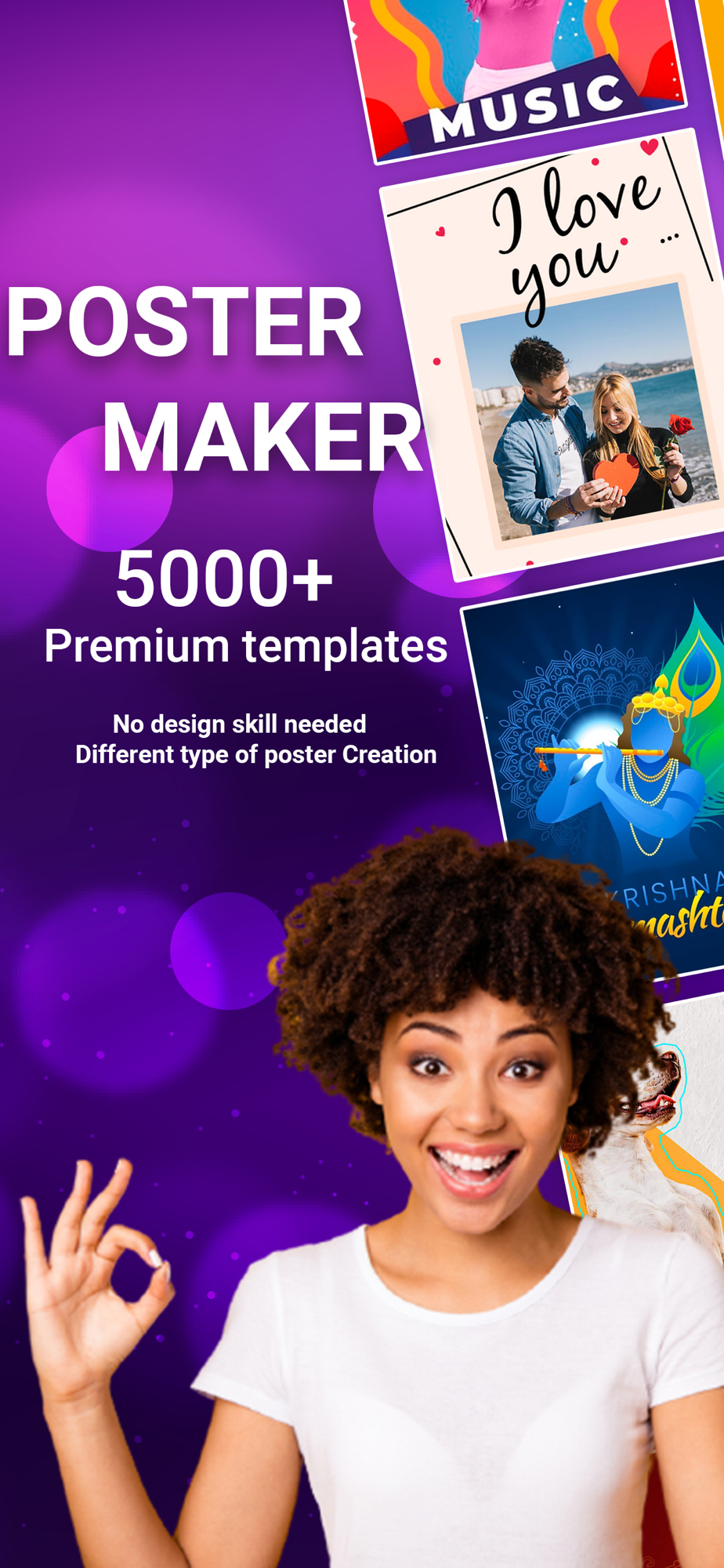 Poster Maker is an easy to use app, just select the background you like in the ratio as per your need and add your text with poster design fonts, add wonderful stickers (specially picked for poster making), add your pictures from gallery and create perfect poster every time.