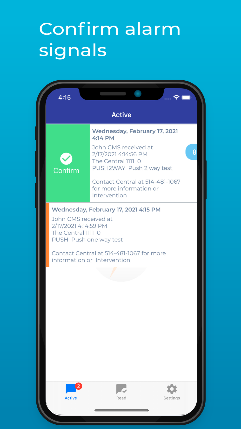 Verificathor receives notifications from your Alarm Receiving Center. You can confirm or cancel these alarm signals.