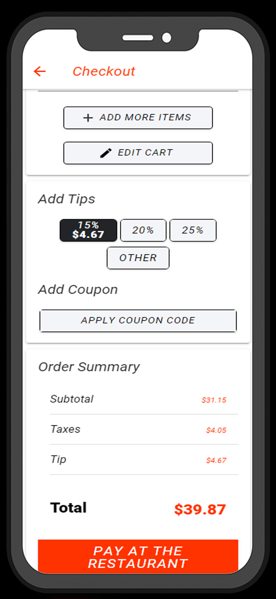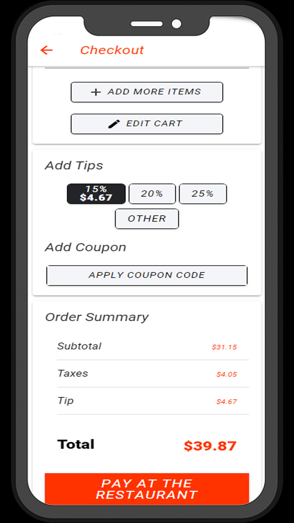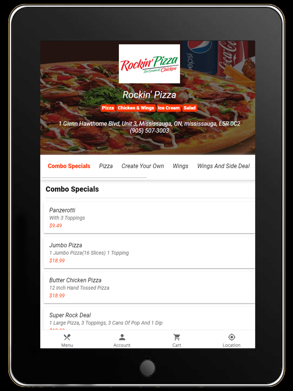 Food ordering app for the restaurant Rockin Pizza
