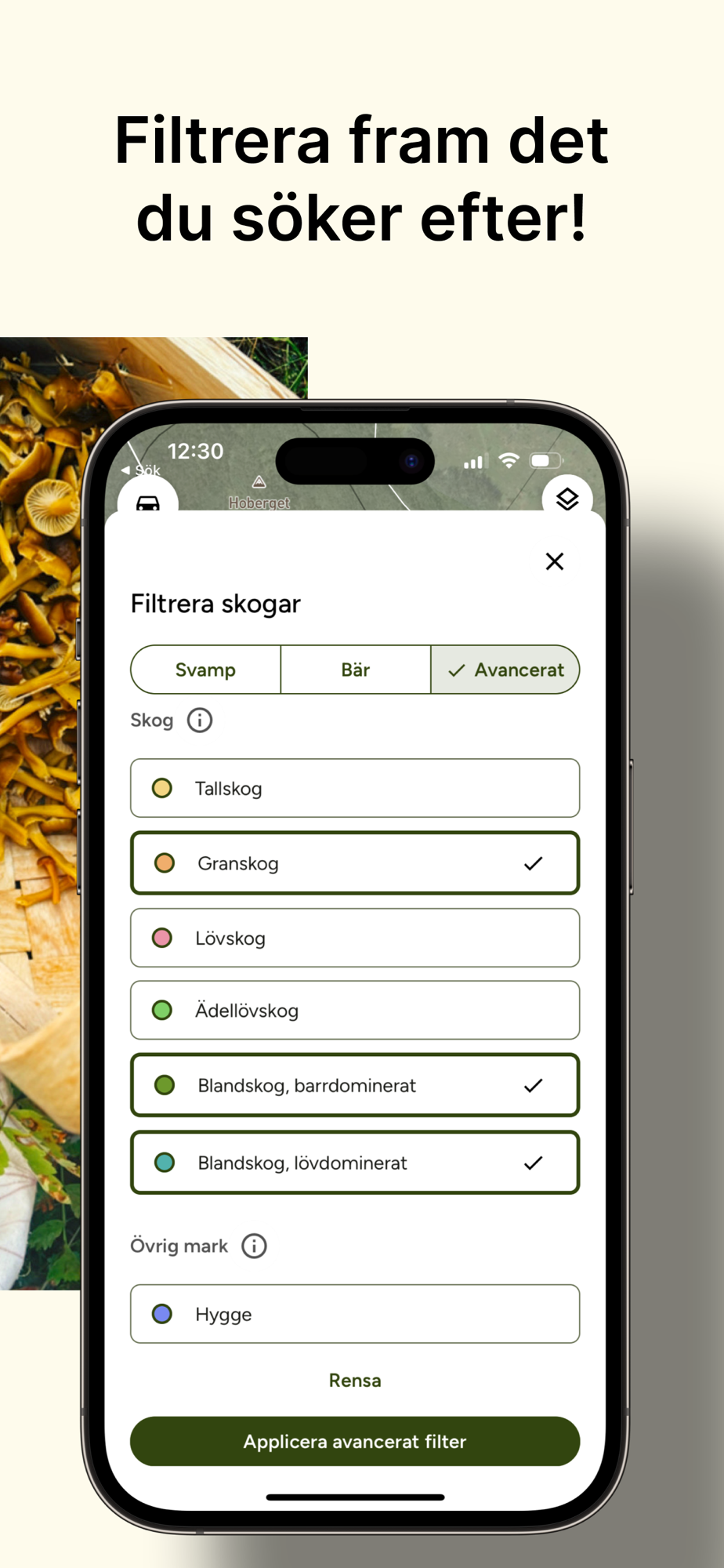 - Filtrera fram de bästa skogarna för svampen