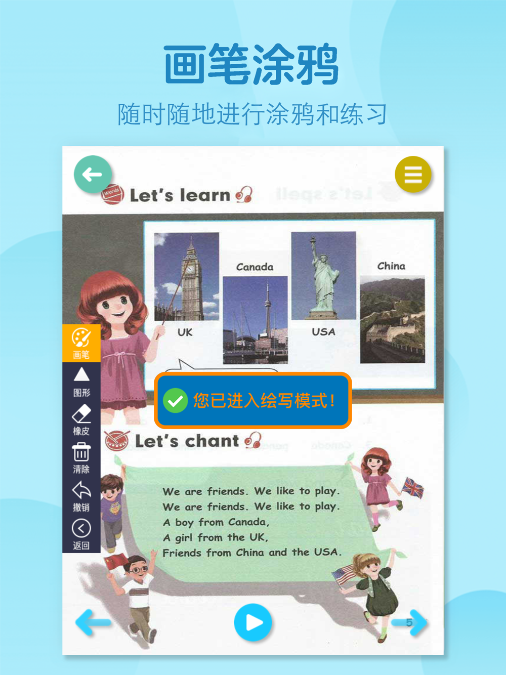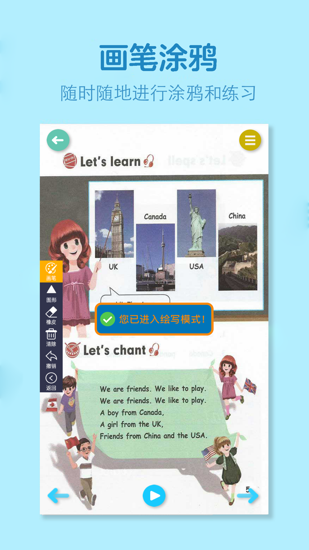 【2】画笔功能,全屏涂鸦让学习更加的有趣让学习更加高效率。完全同步最新发行教材,绝无缺漏页现象。