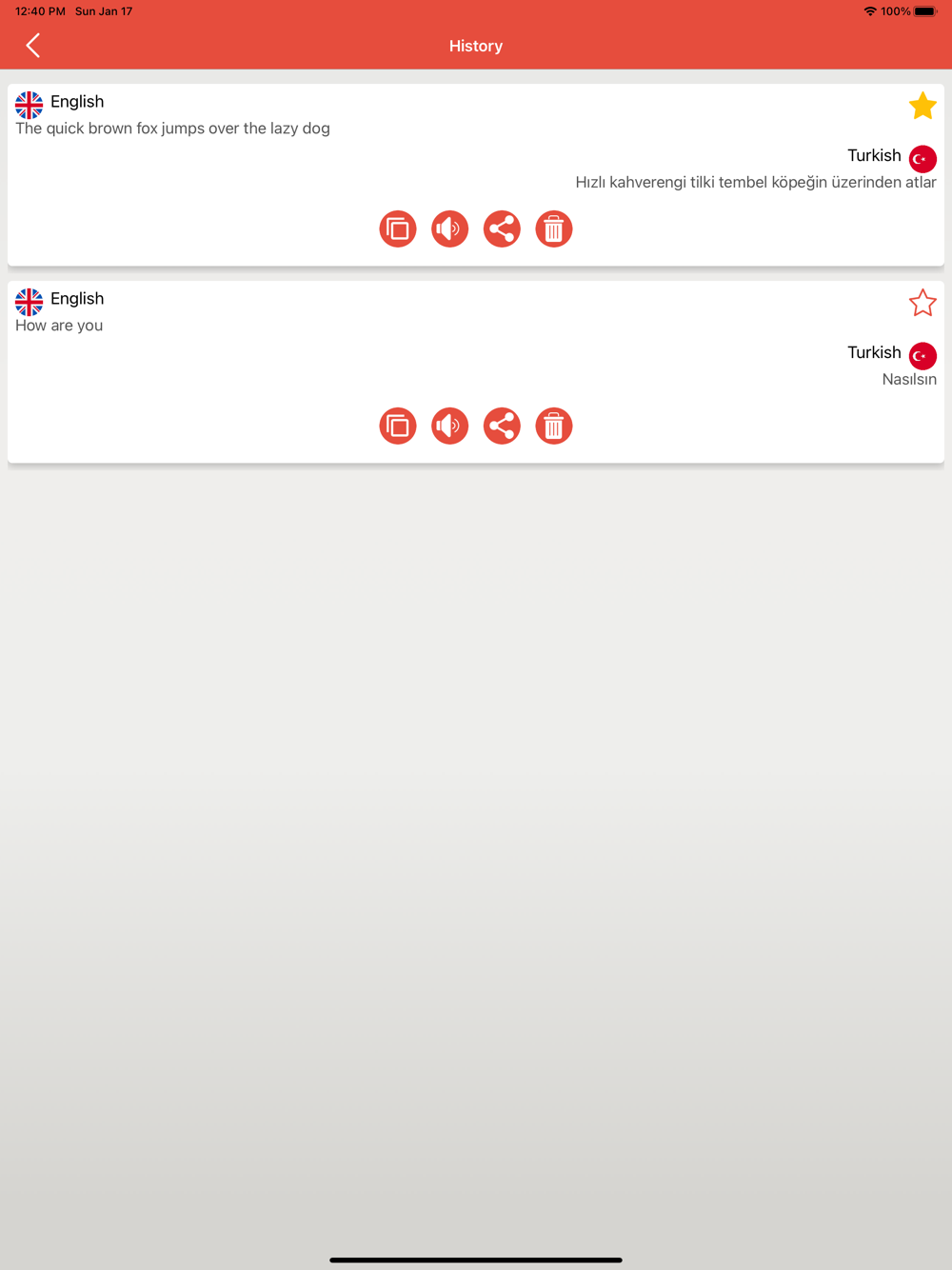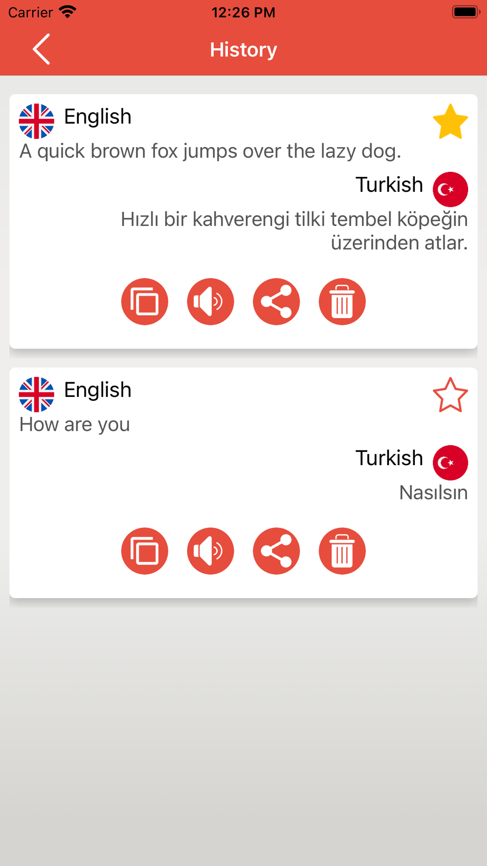 • You can share the translated words and phrases with your family and friends