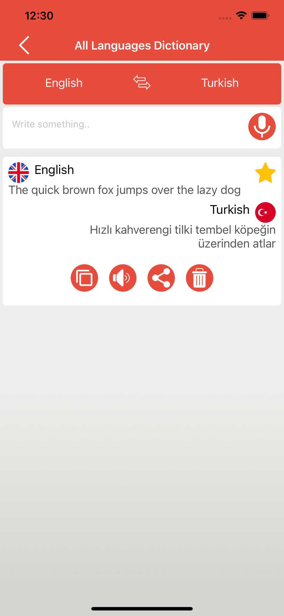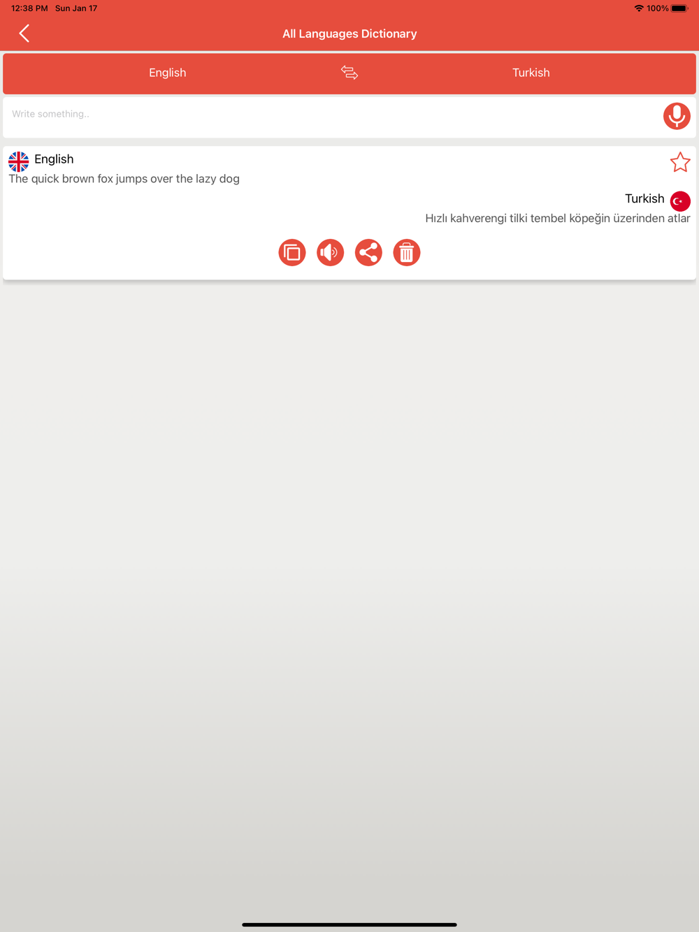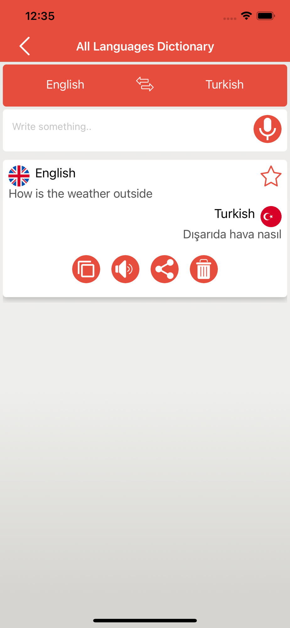 The functionality of this app is simple, you just have to select your source language and destination language, and then input your voice, or write the word or sentence to find it meaning. The app will simply find out the search term and give you its translation in your desired language. Furthermore, you can find its exact pronunciation, can share on chat and can make it favorite.