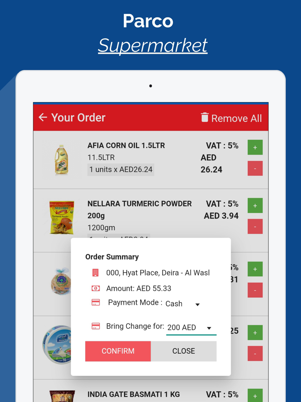 Parco Supermarket Application allows its users to buy and order commodities like daily grocery items online with Free Home delivery Facility.