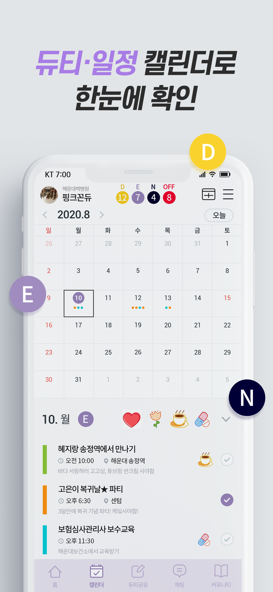 “간호사의 워라밸 플러스” 보기 쉽고 예쁜 근무/일정 캘린더! 듀티 공유는 물론, 무료 채팅과 커뮤니티, 웹툰, 채용까지 한번에 쓰리오프!