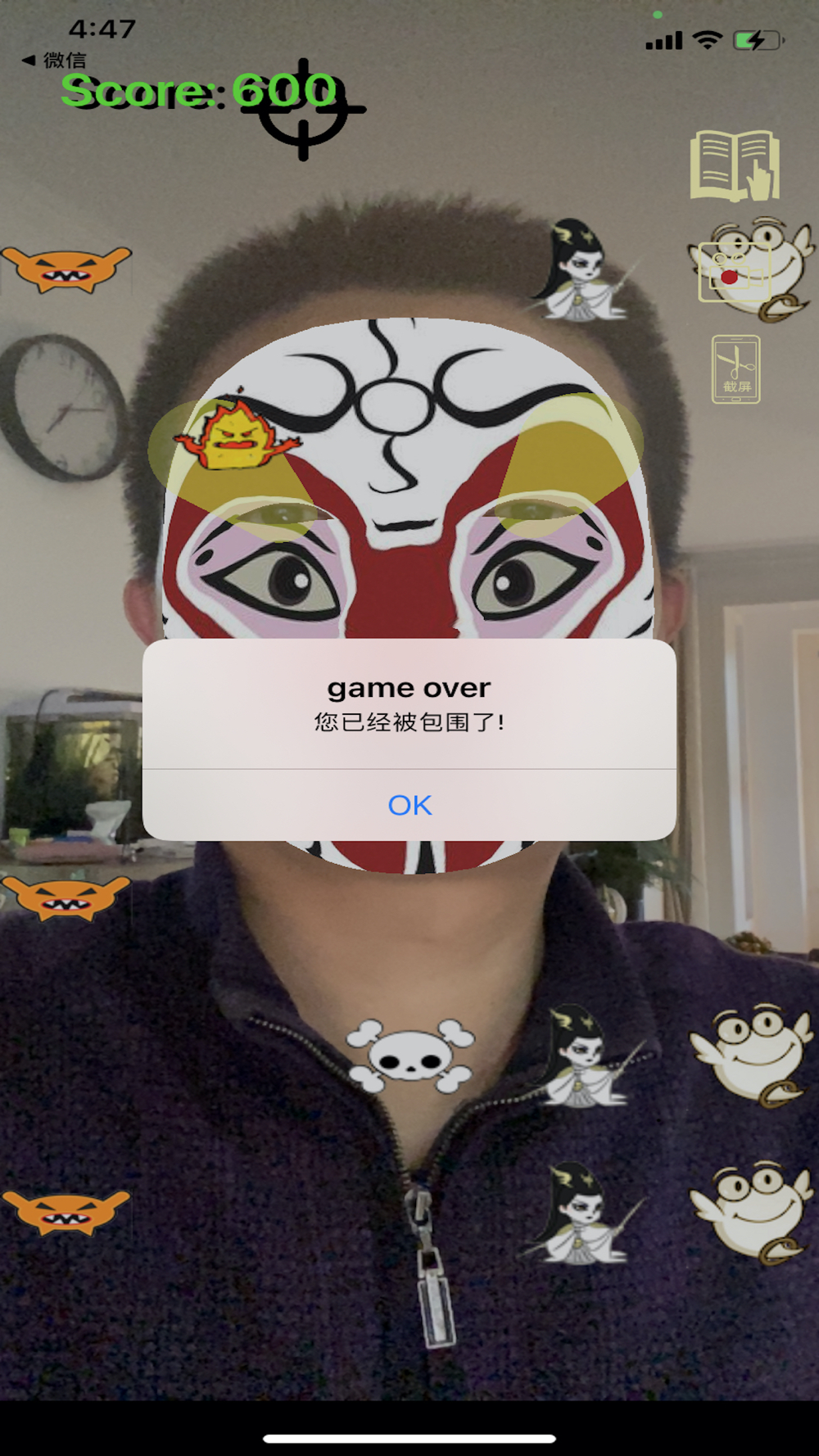 火眼降妖 是一款十分趣味的休闲小游戏。灵感来自于西游记里孙悟空的火眼金睛,通过AR的脸部,眼动追踪来控制准星,当准星到达妖怪周围时,眨动眼睛即可消灭妖怪.
