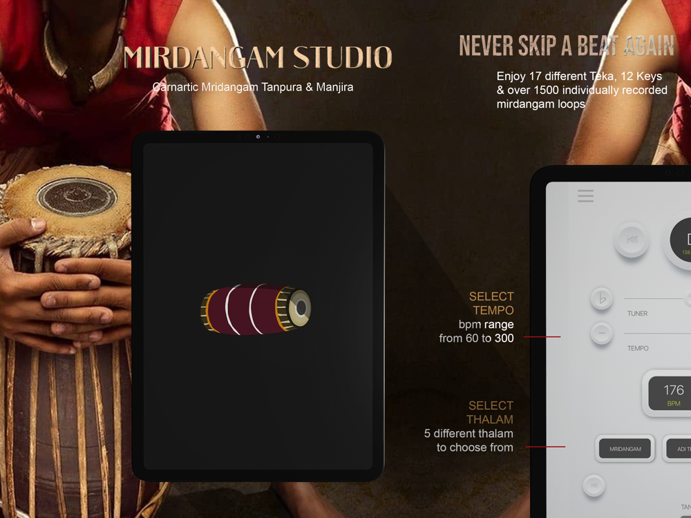 Whether you are a singer, musician or Carnatic instrumentalist (such as a harmonium, violin, veena, mandolin or flute player), you can play the loops and rhythmic beats of the Mridangam drum provided as accompaniment when you practice.