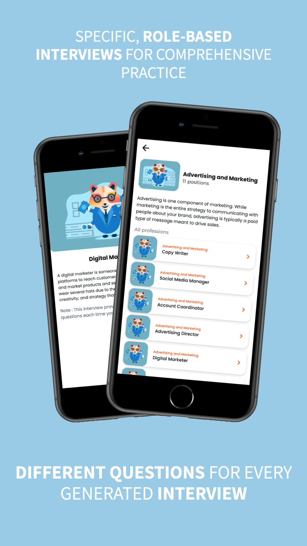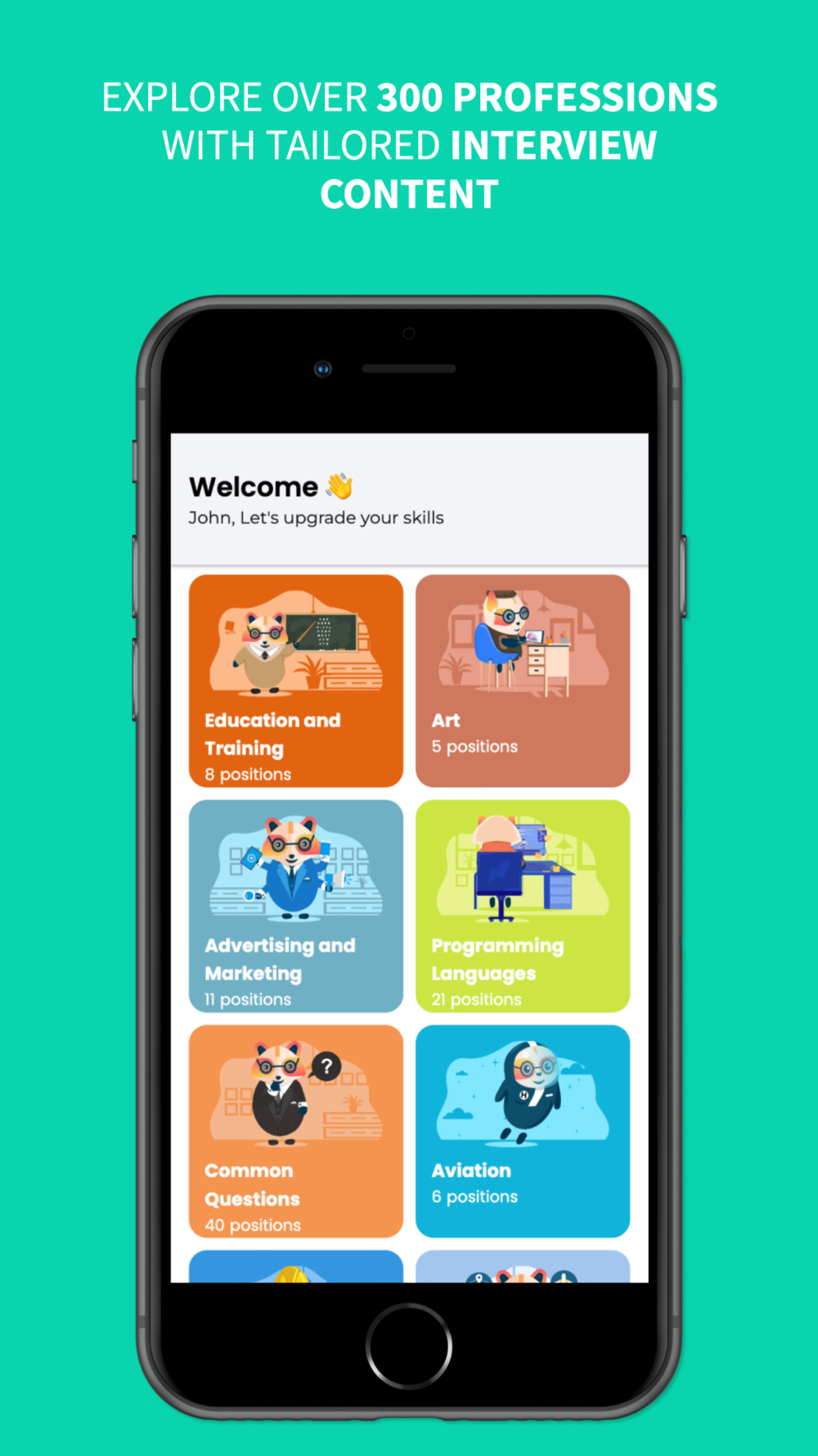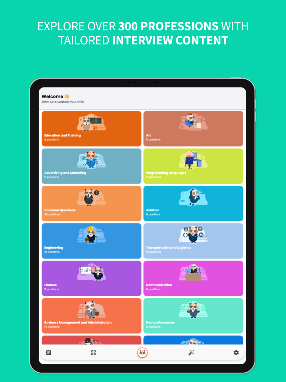 A wide range of mock interviews in one job interview app covering nearly every career category in the employment market.