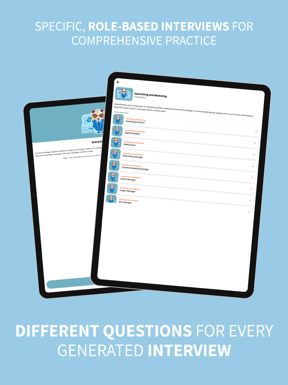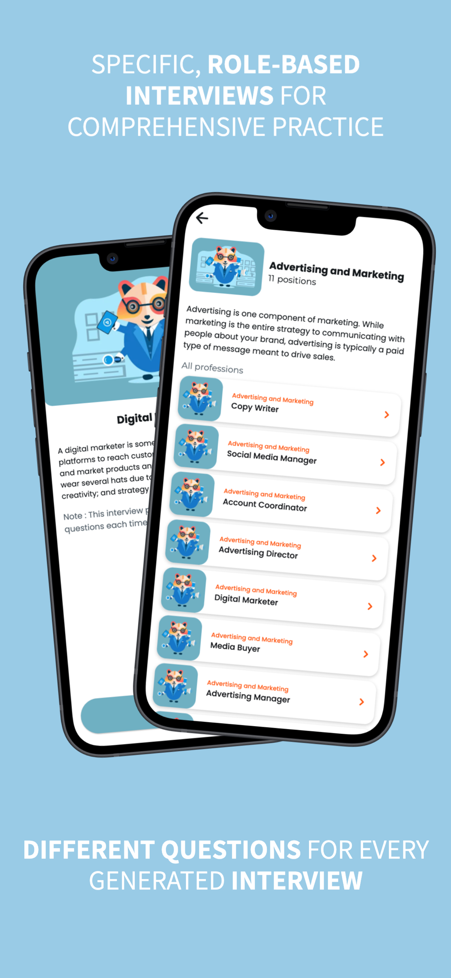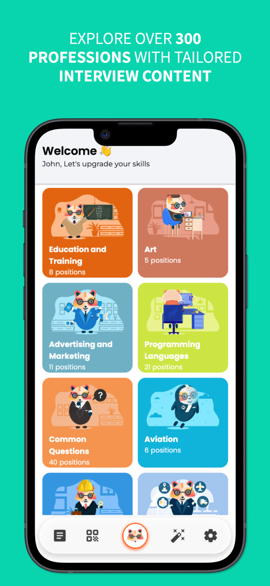 A wide range of mock interviews in one job interview app covering nearly every career category in the employment market.