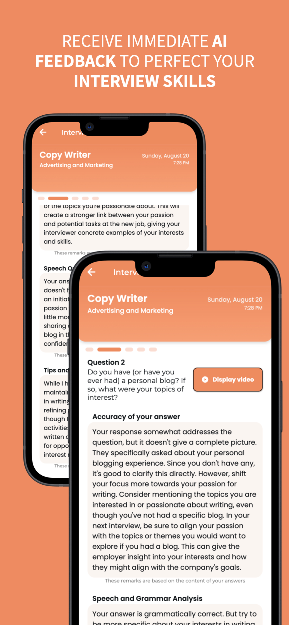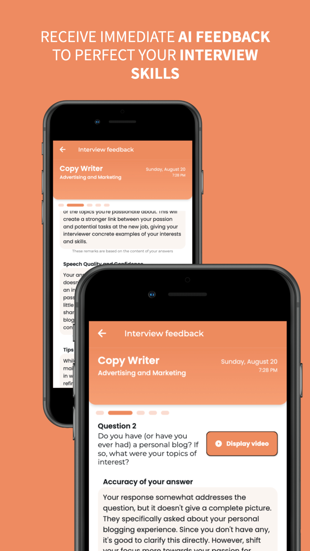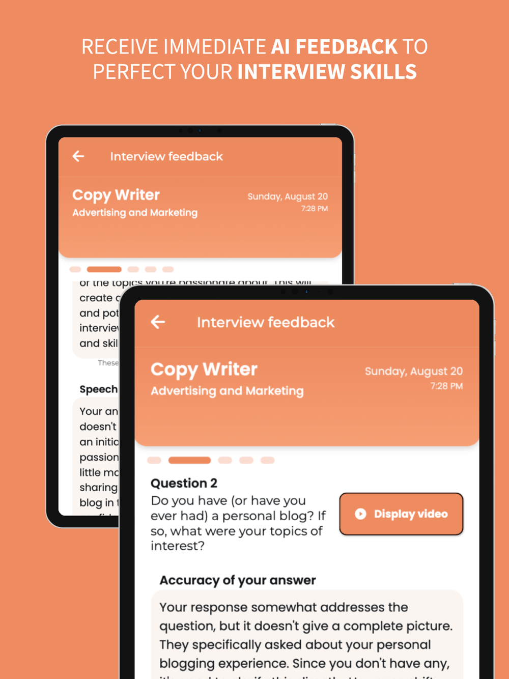 Interviews are recorded on your device so that you can see yourself performing the mock interviews and improve your interview skills.
