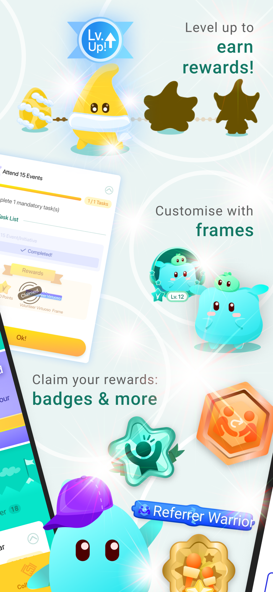 • Complete missions to level up your avatar and earn points