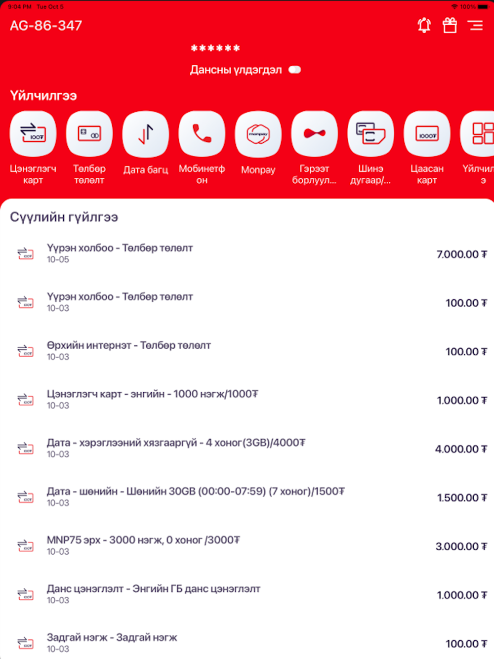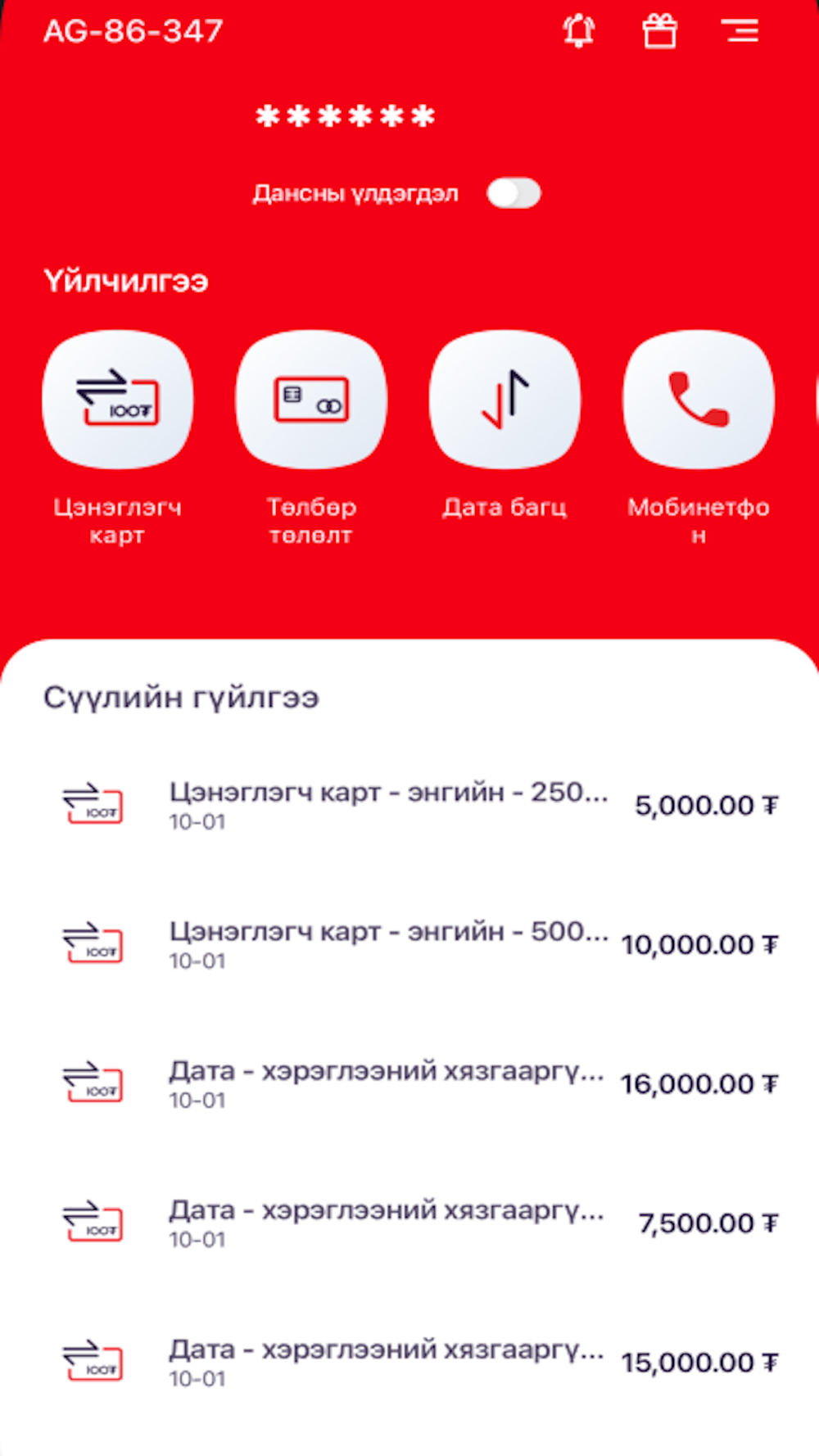 Хэрэглэгчийн дугаарыг нэгж, датагаар цэнэглэх