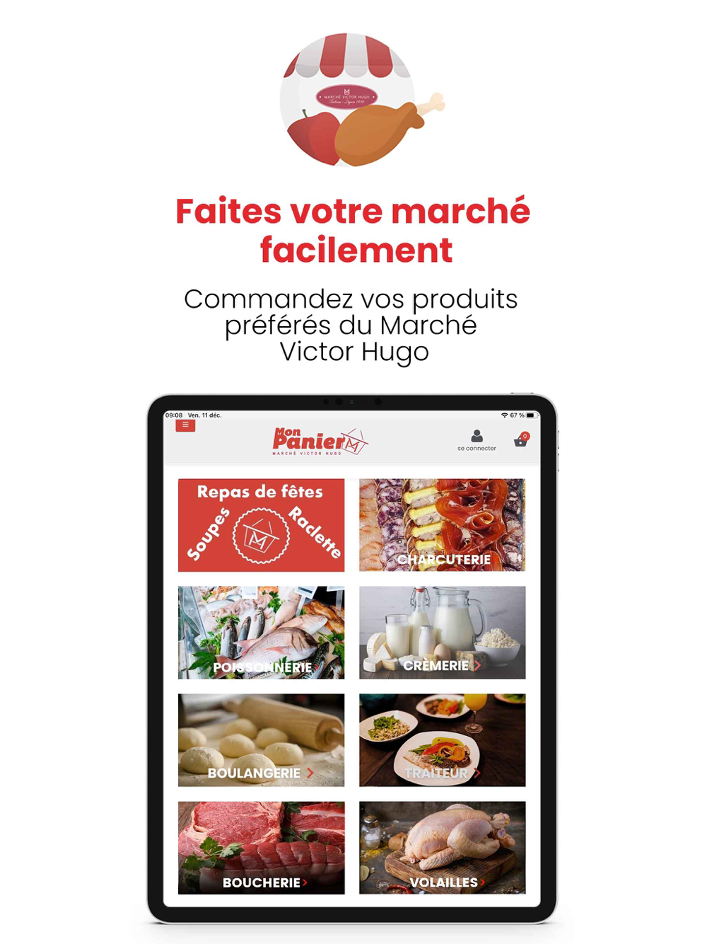 Mon Panier Marché Victor Hugo vous propose des produits de commerçants du mythique Marché Victor Hugo de Toulouse. Pour vous c'est le plaisir de faire votre marché comme d'habitude, mais en version 3.0