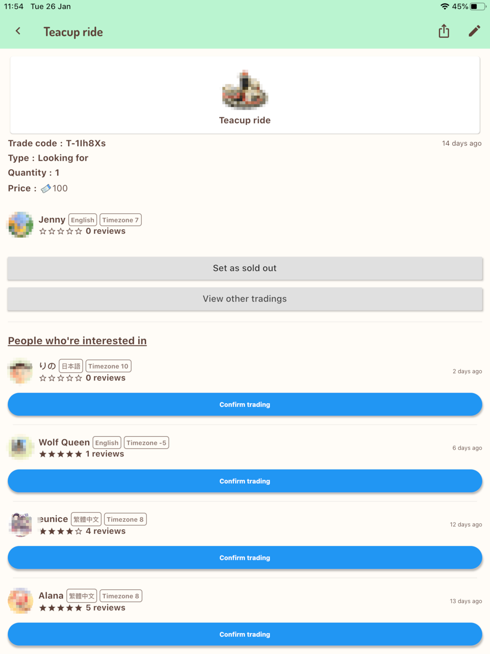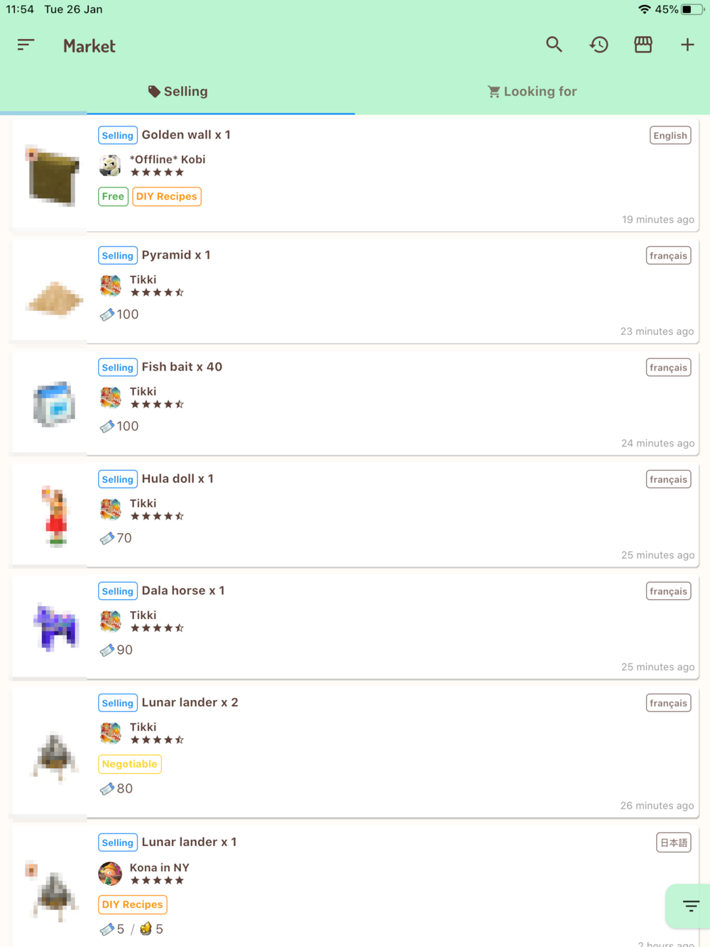 Exchange your items / artworks / villagers / fossils / cd ablum / tickets / bells with other Animal Crossing players.
