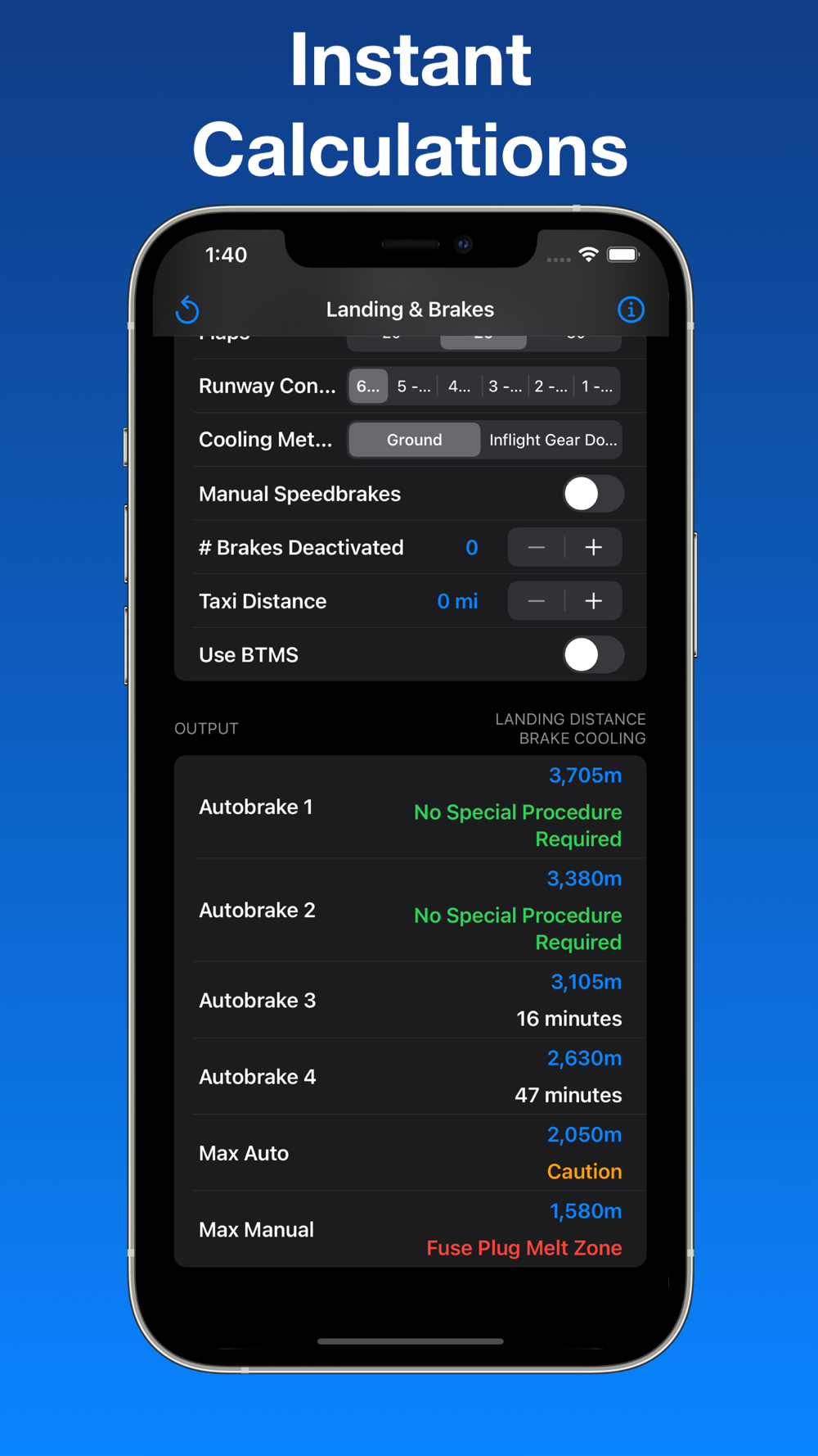 Landing Distance & Brake Cooling Schedule Calculator for Boeing 777/787.