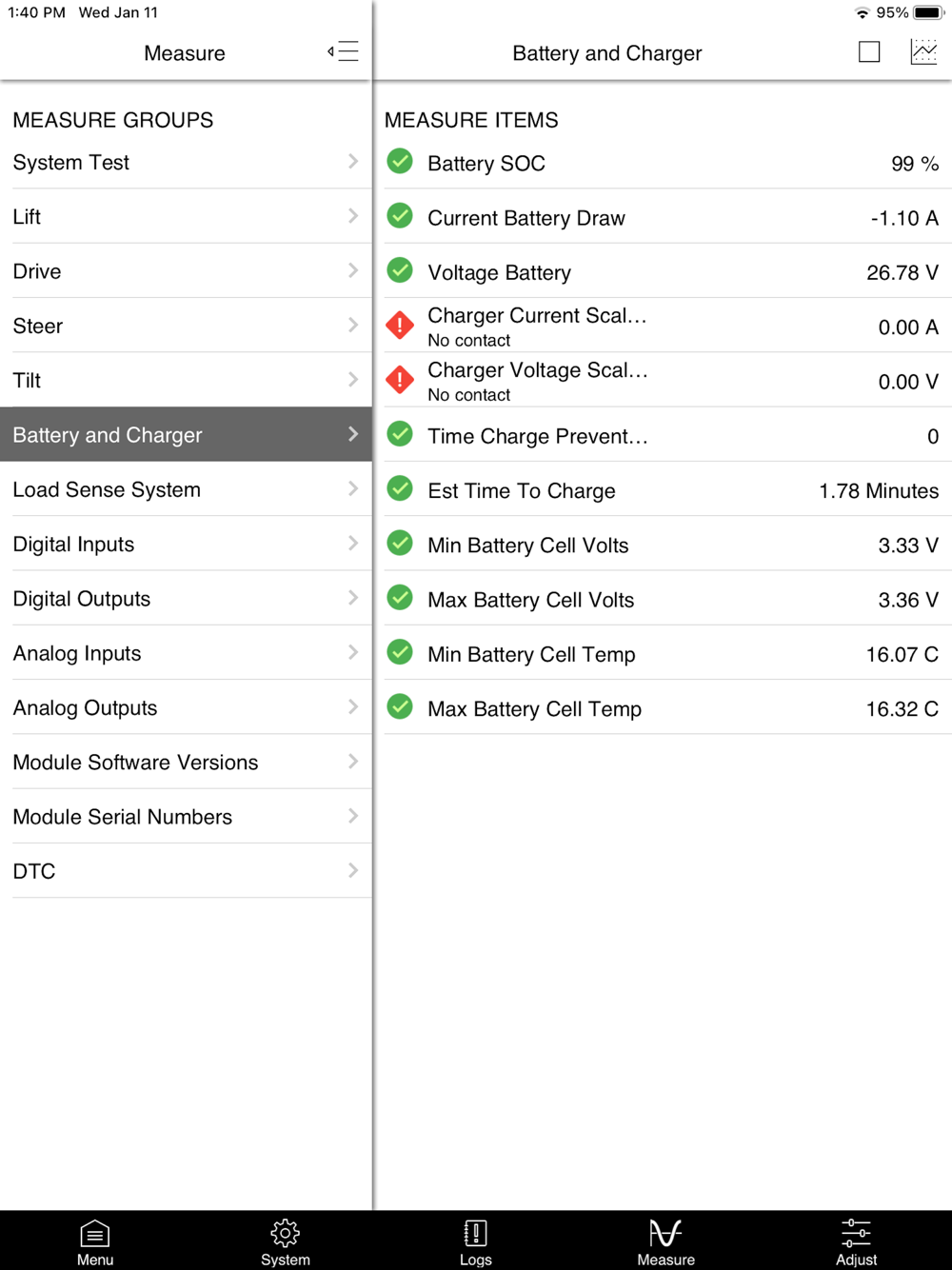 DaVinciGO is a user-friendly service tool for the AE1932 scissor lift. It enables service technicians to connect wireless to their AE1932 scissor lift and perform actions such as trouble shooting, viewing DTC’s, adjusting machine personalities, performing calibrations, checking signals and taking measurements in real-time, and connecting remotely to JLG service call-center.