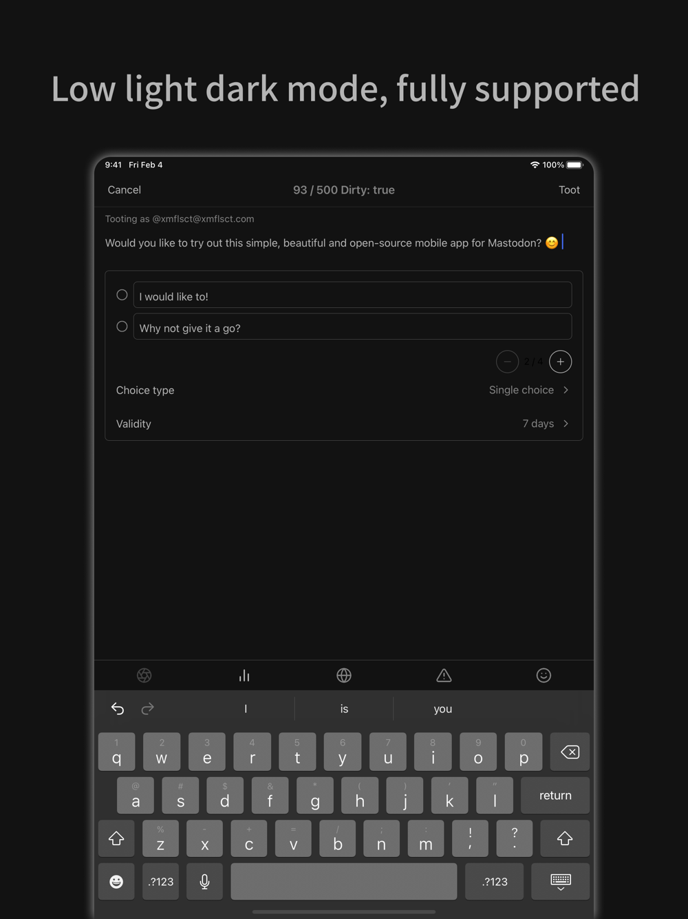 tooot is an open source, simple yet elegant Mastodon mobile client. A Mastodon (https://joinmastodon.org/) account is required to use this app.
