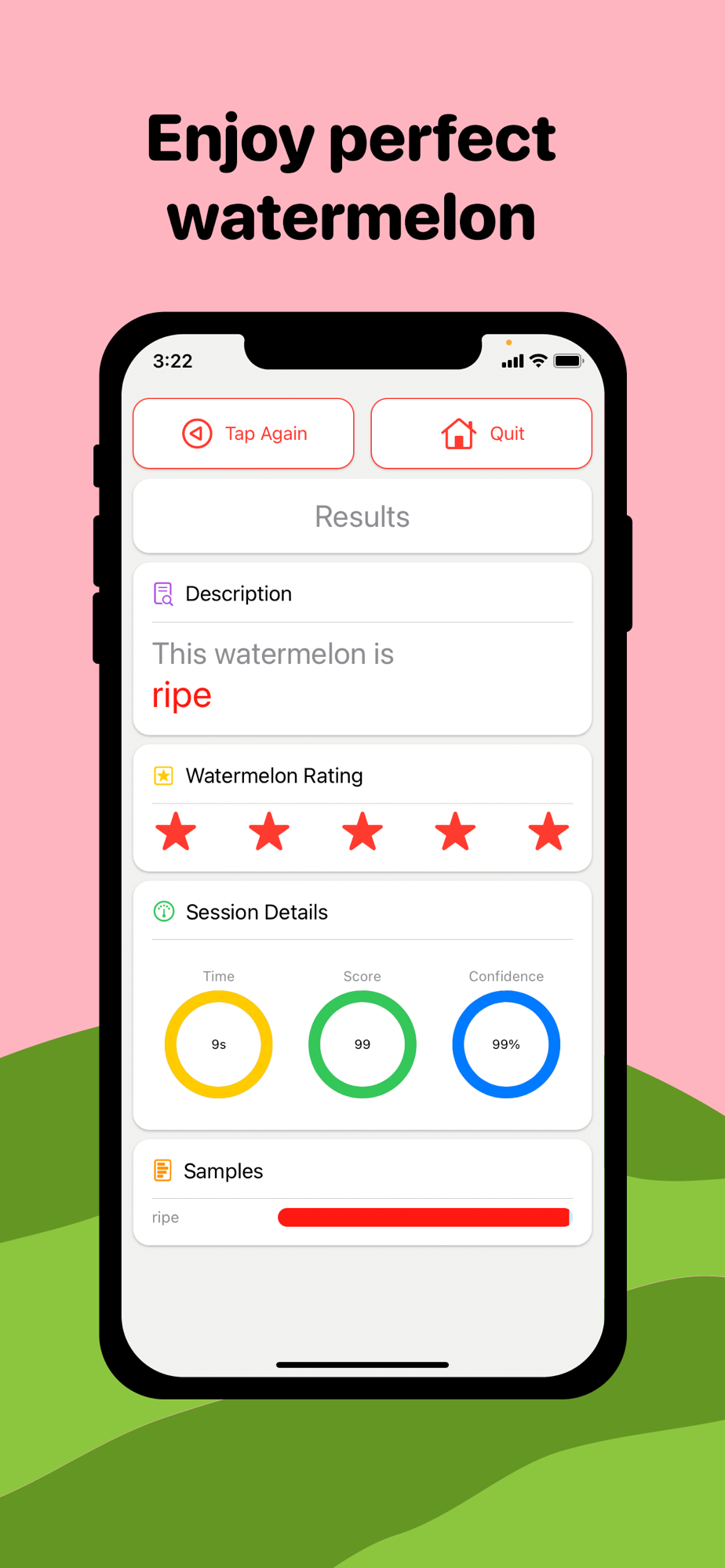 -Get accurate watermelon ripeness results in seconds! All it takes is a few taps.