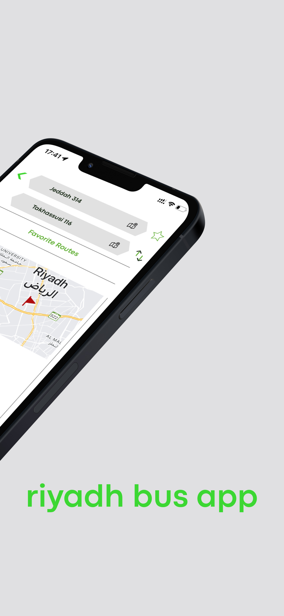 Journey Planner – users can plan their journeys within the city of Riyadh from one bus stop to another bus stop. Users can type bus stop names, select them from the drop-down list, select them from recent searches, or select them on the map. Users can also save their favourite routes.